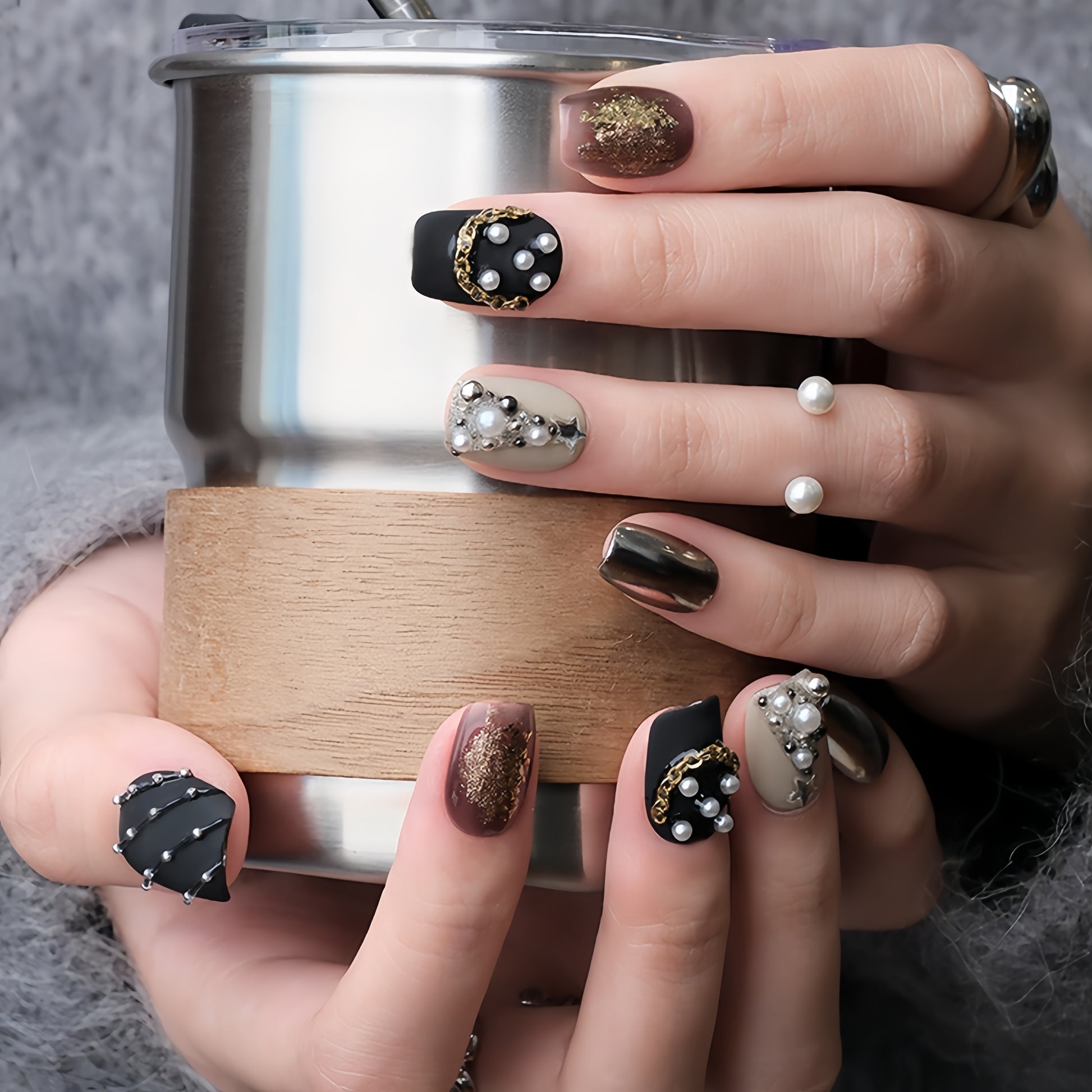🖤 Matte black & metallic gold combo — sleek, dramatic, and effortlessly chic