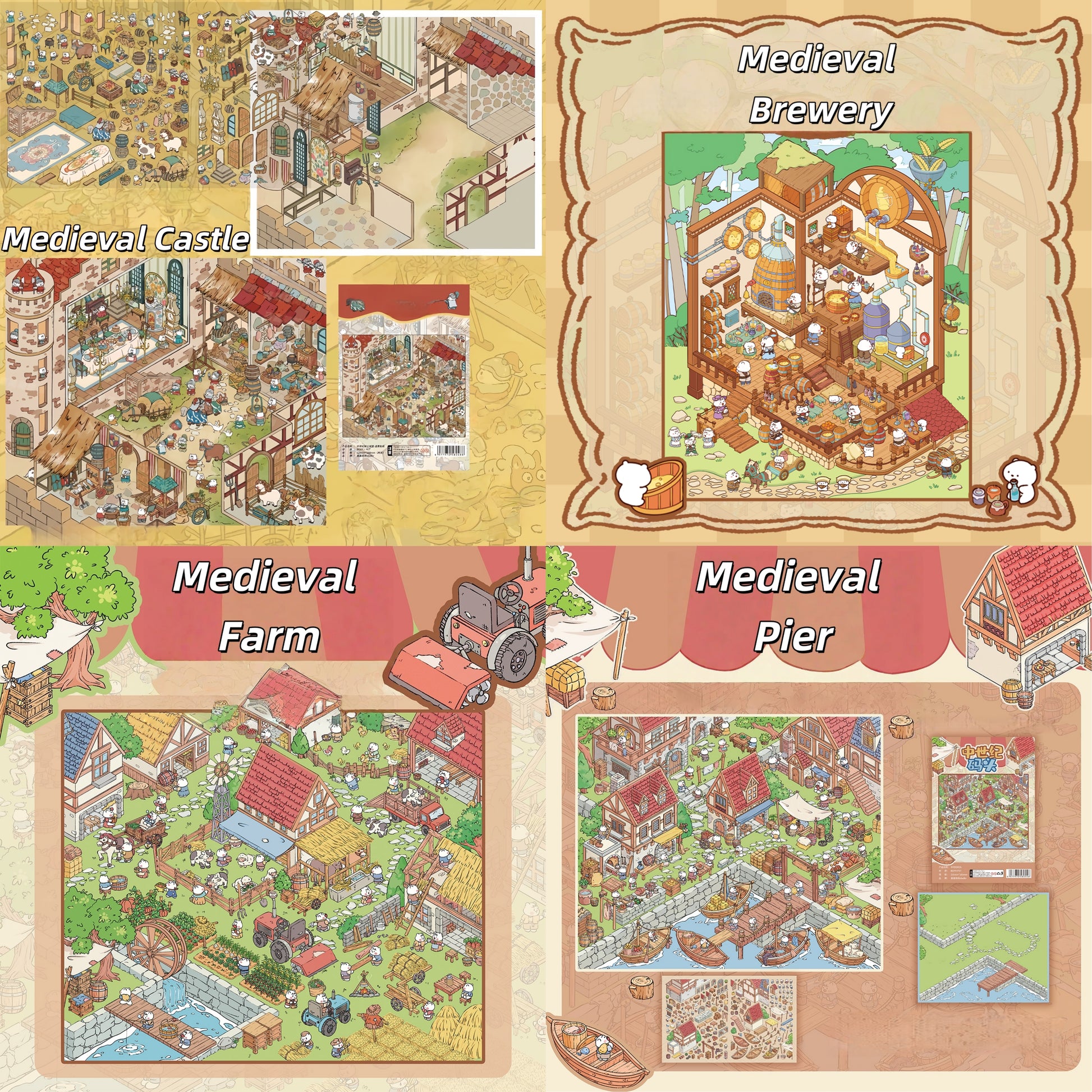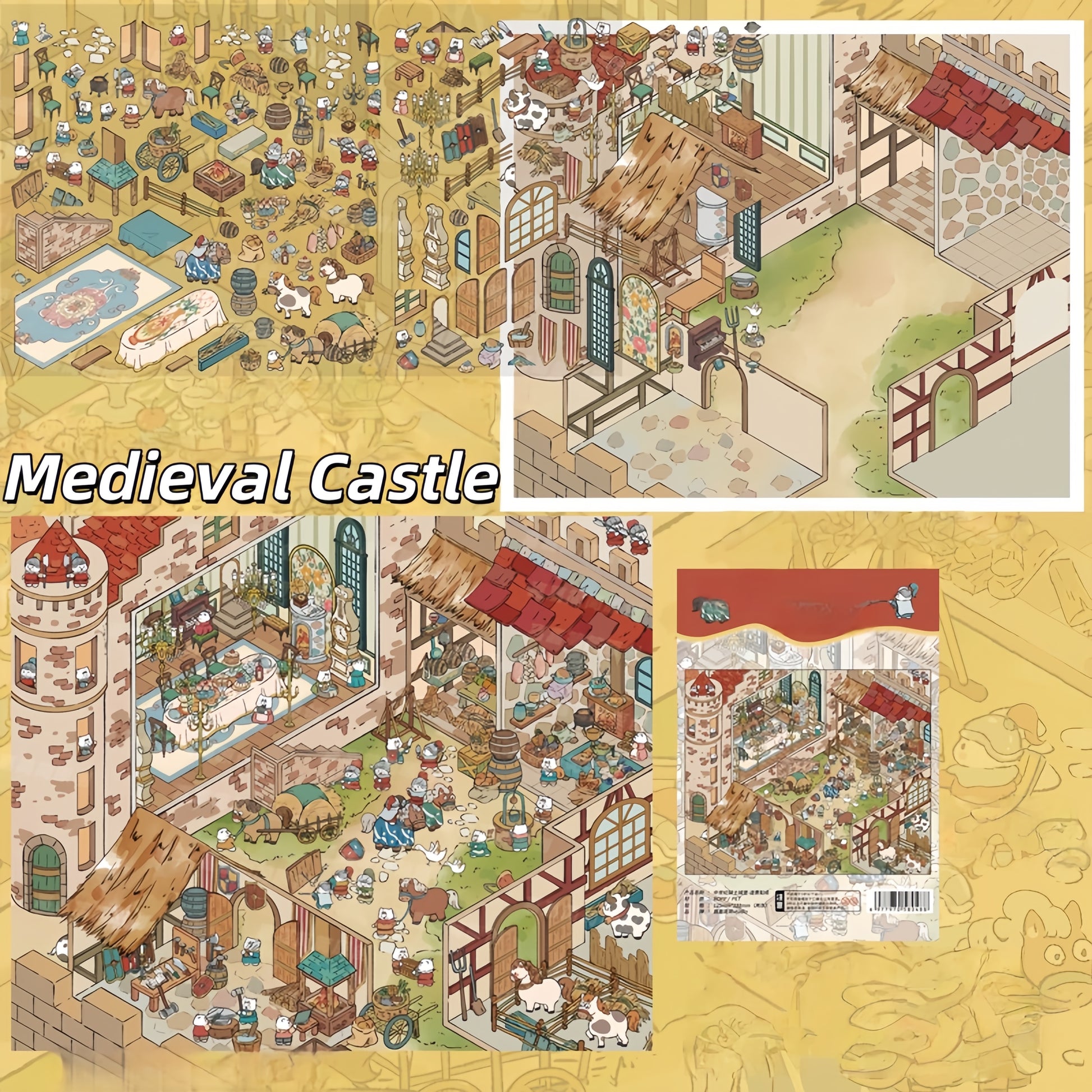 Medieval Adventure 3D Sticker | 4 Cute Miniature Scenes