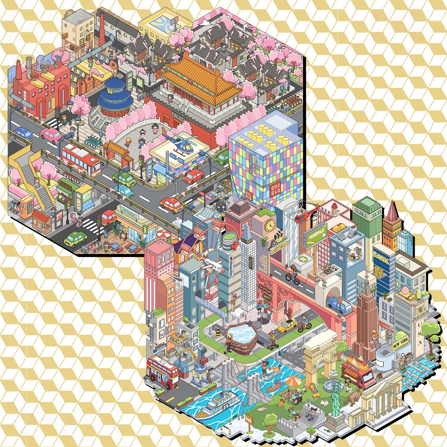 Megalopolis 3D Sticker | 2 Cute Miniature Scenes