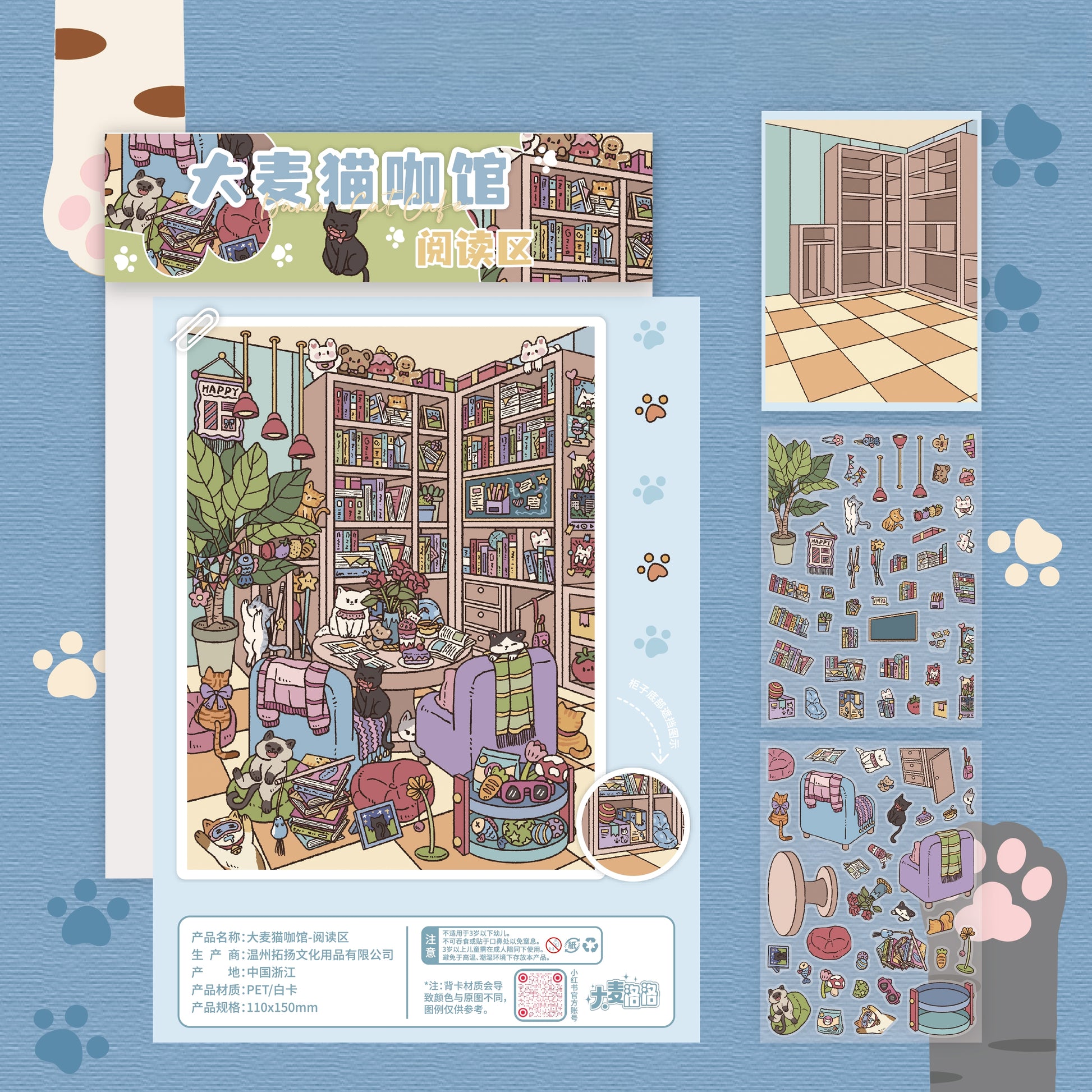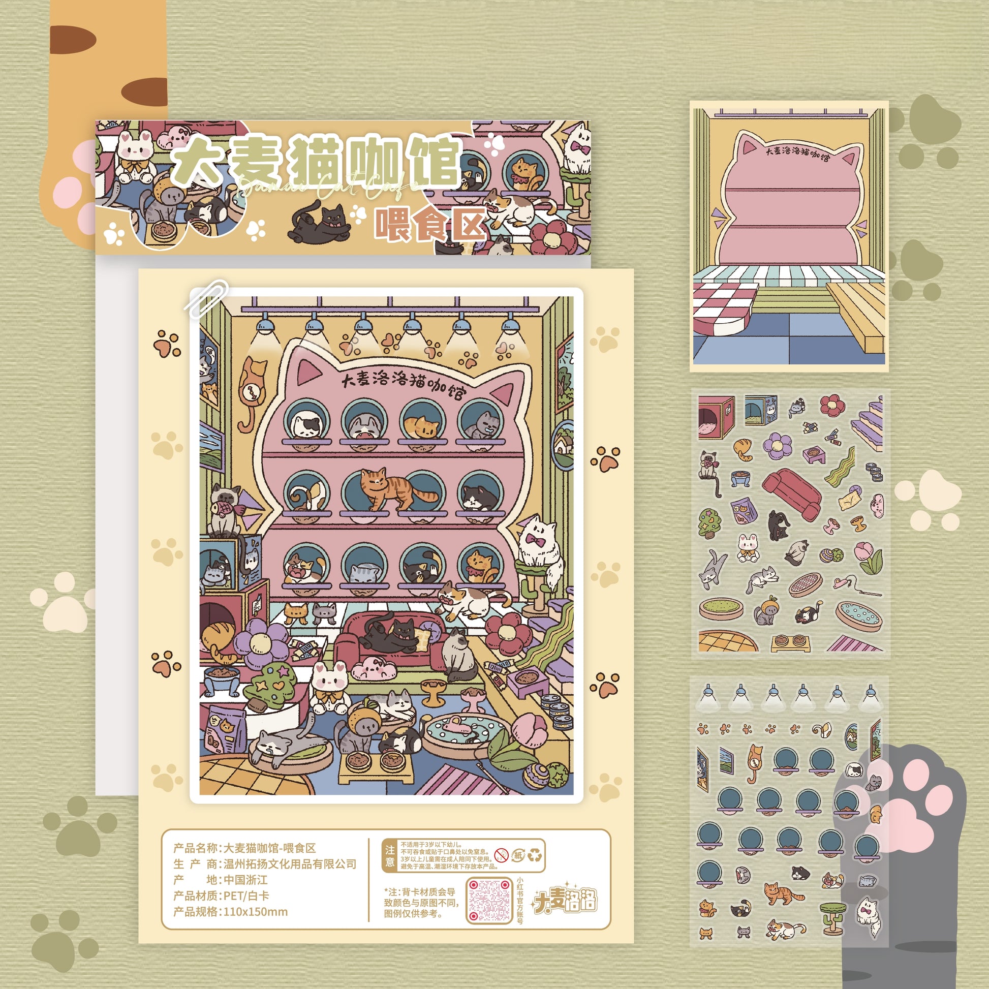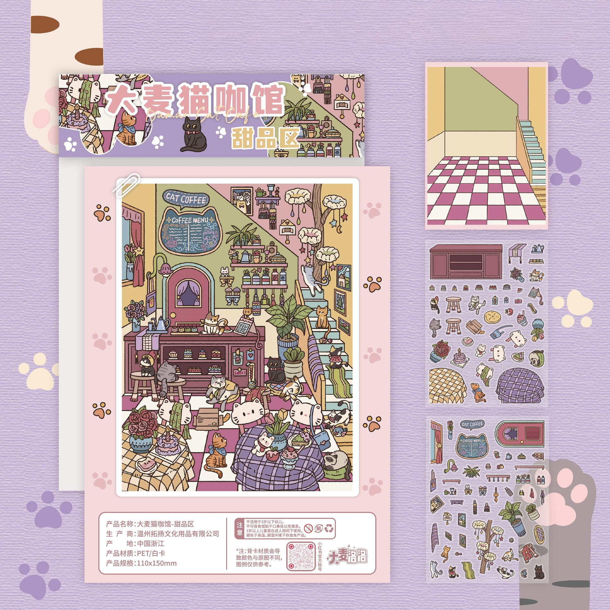 Meowmalt Café 3D Sticker | 4 Cute Miniature Scenes