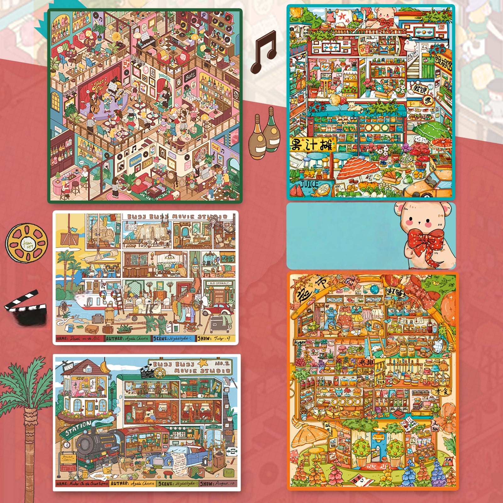 Cute Busy Town 3D Sticker | 5 Cute Miniature Scenes