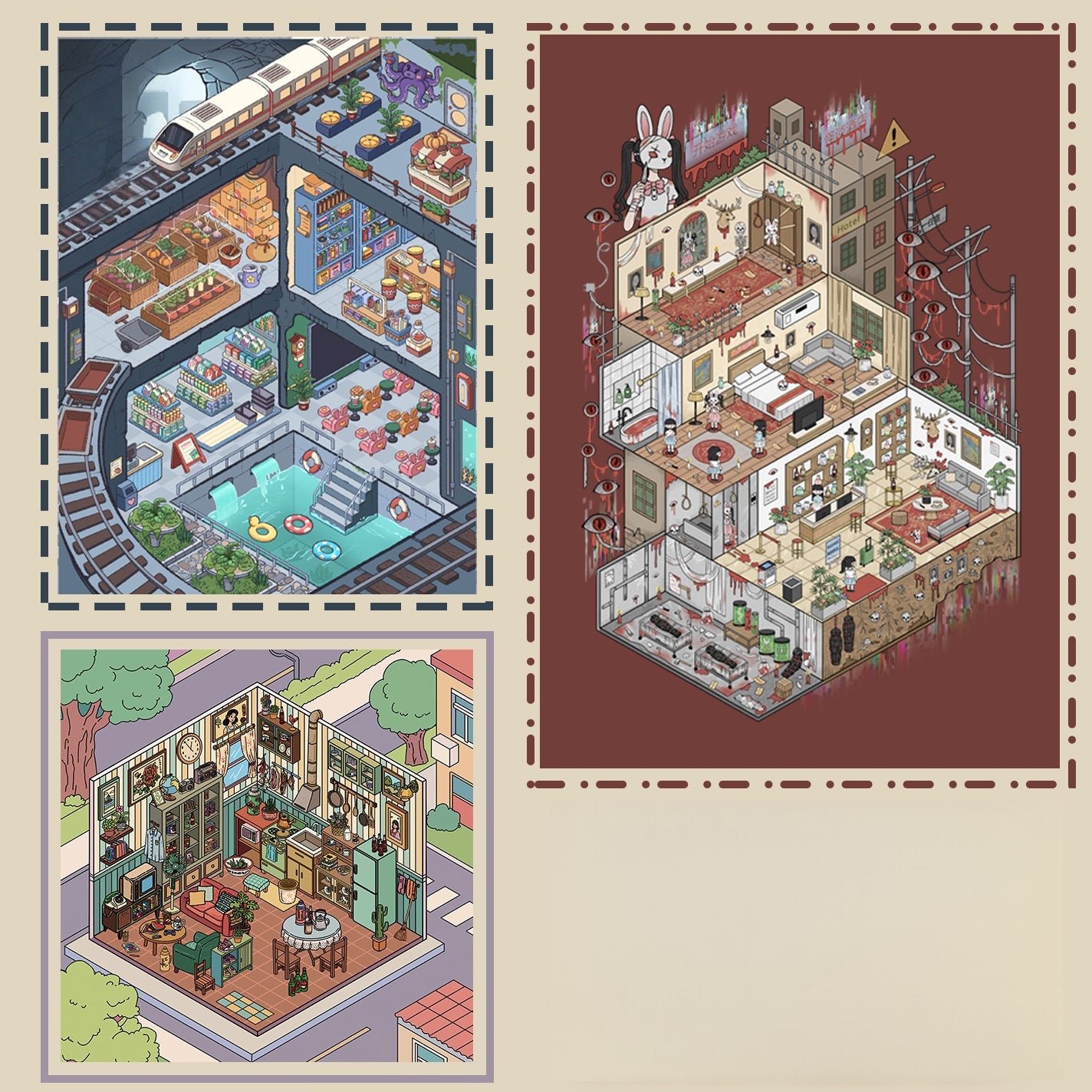 Mystery Cottage 3D Sticker | 3 Cute Miniature Scenes