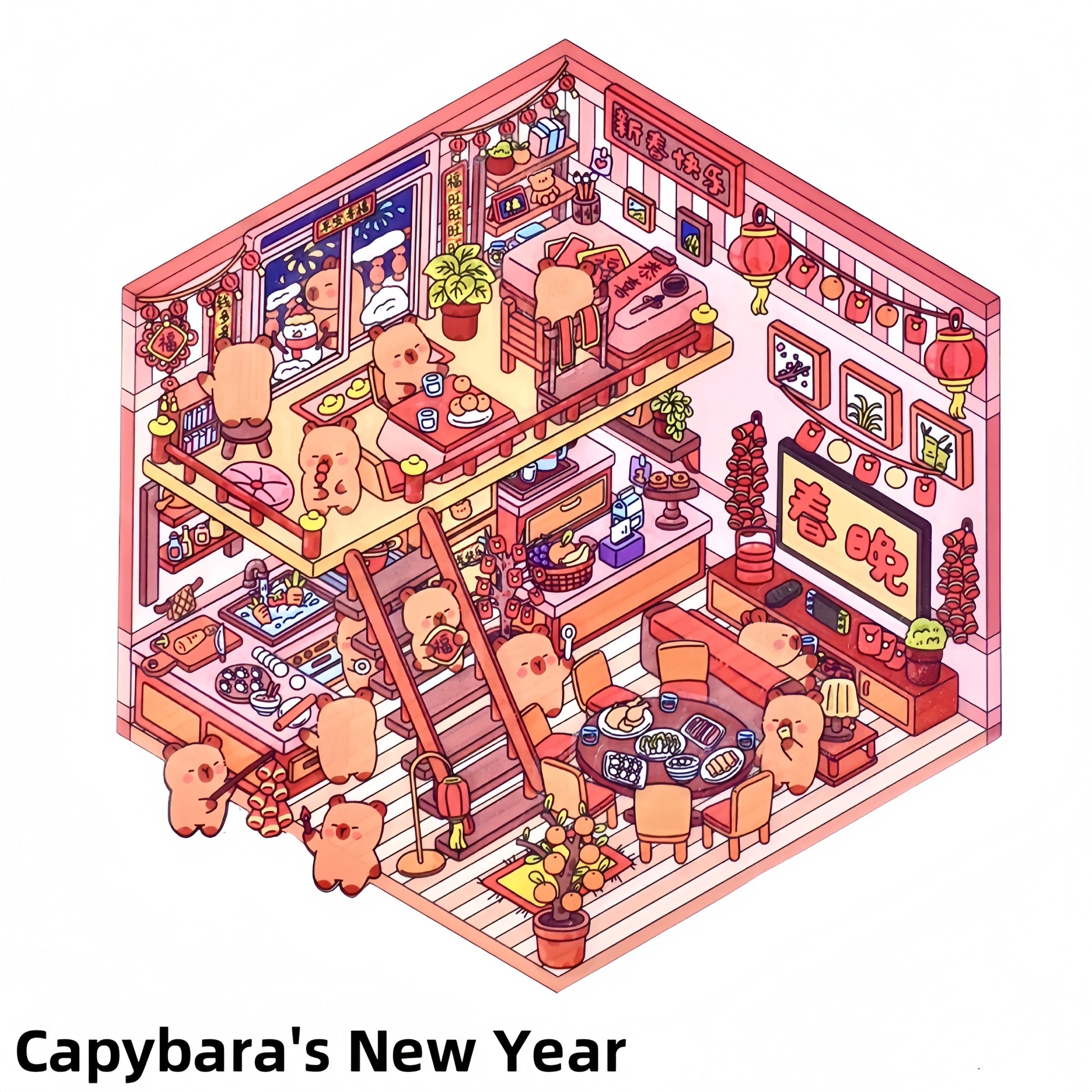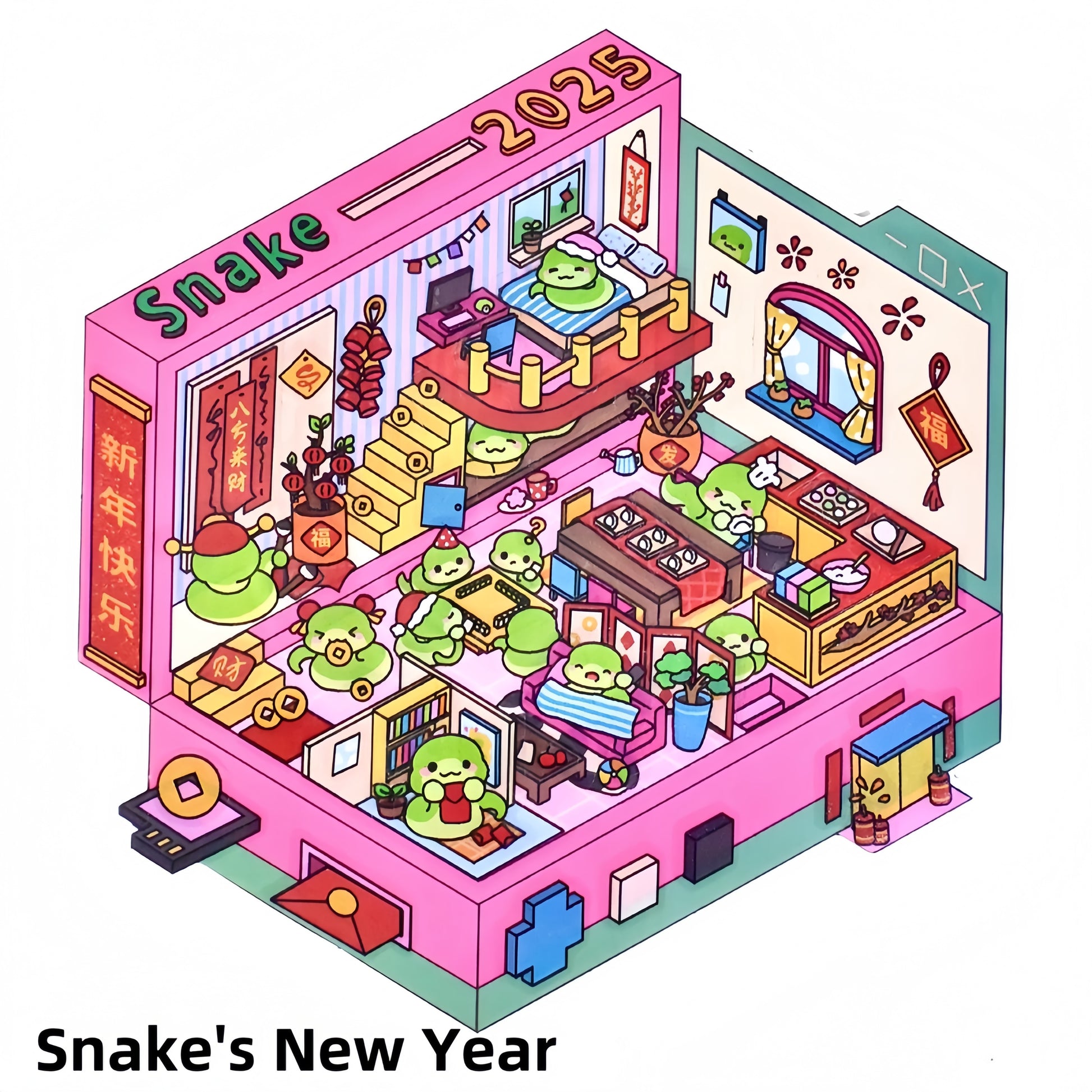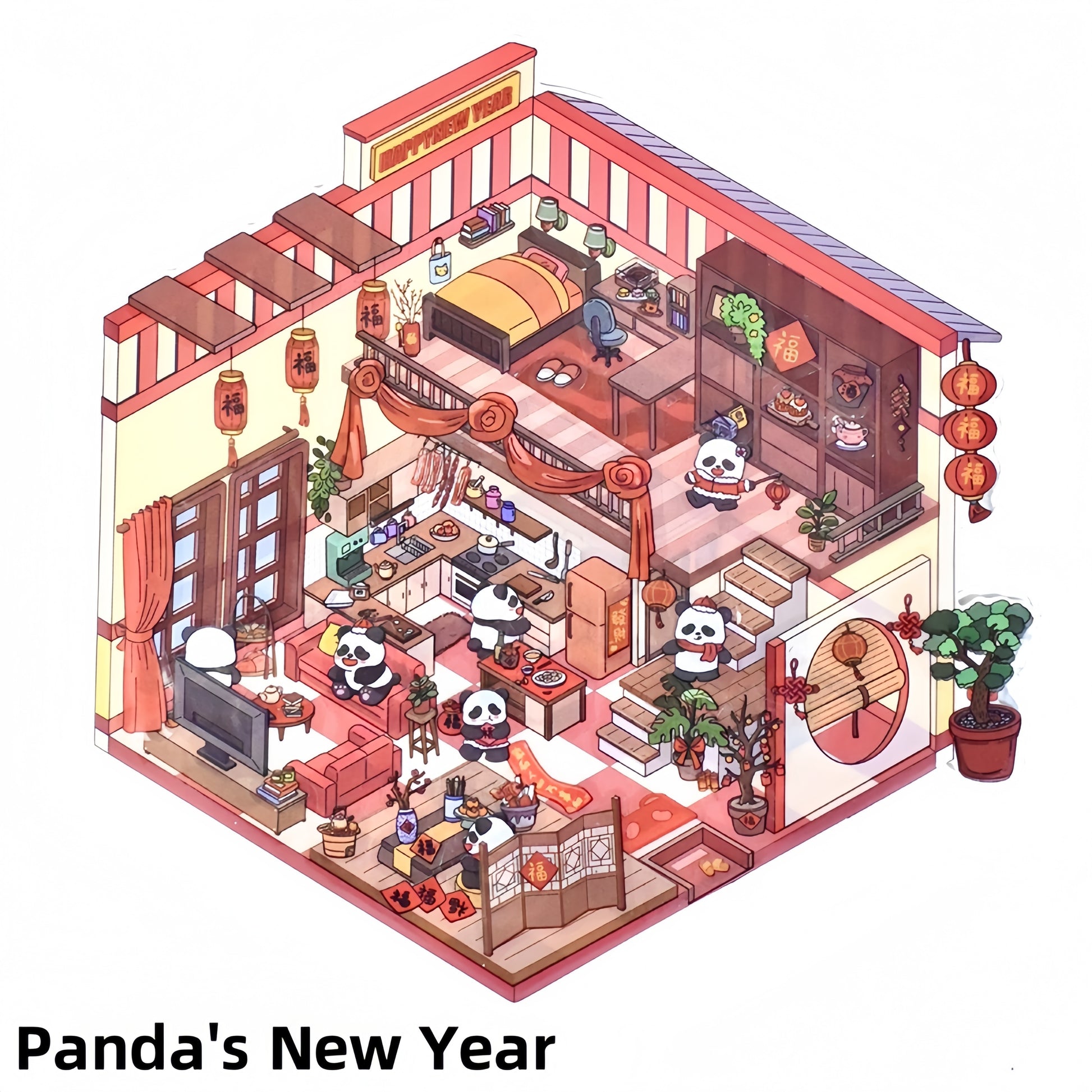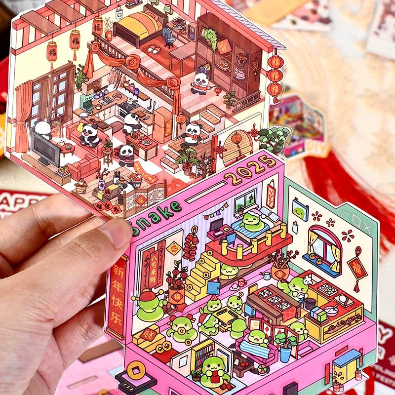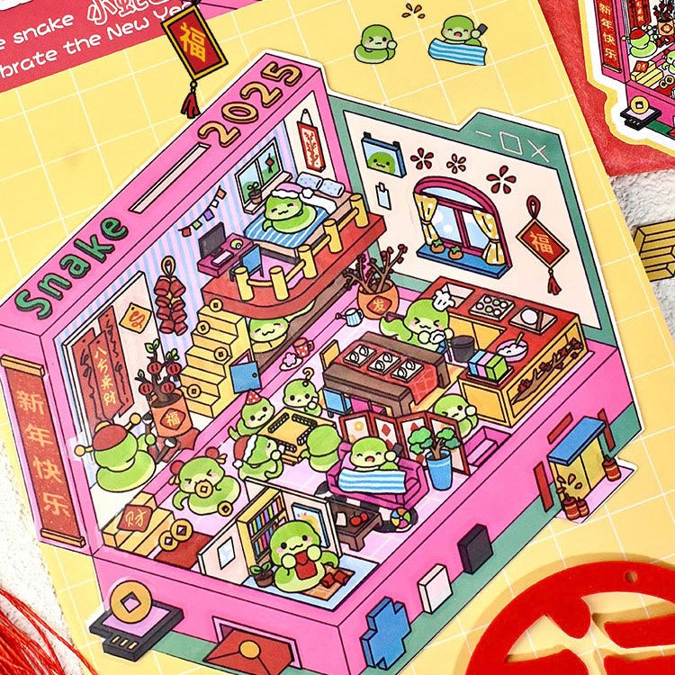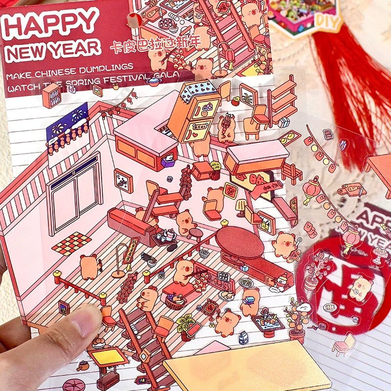 Happy New Year 3D Sticker | 4 Cute Miniature Scenes