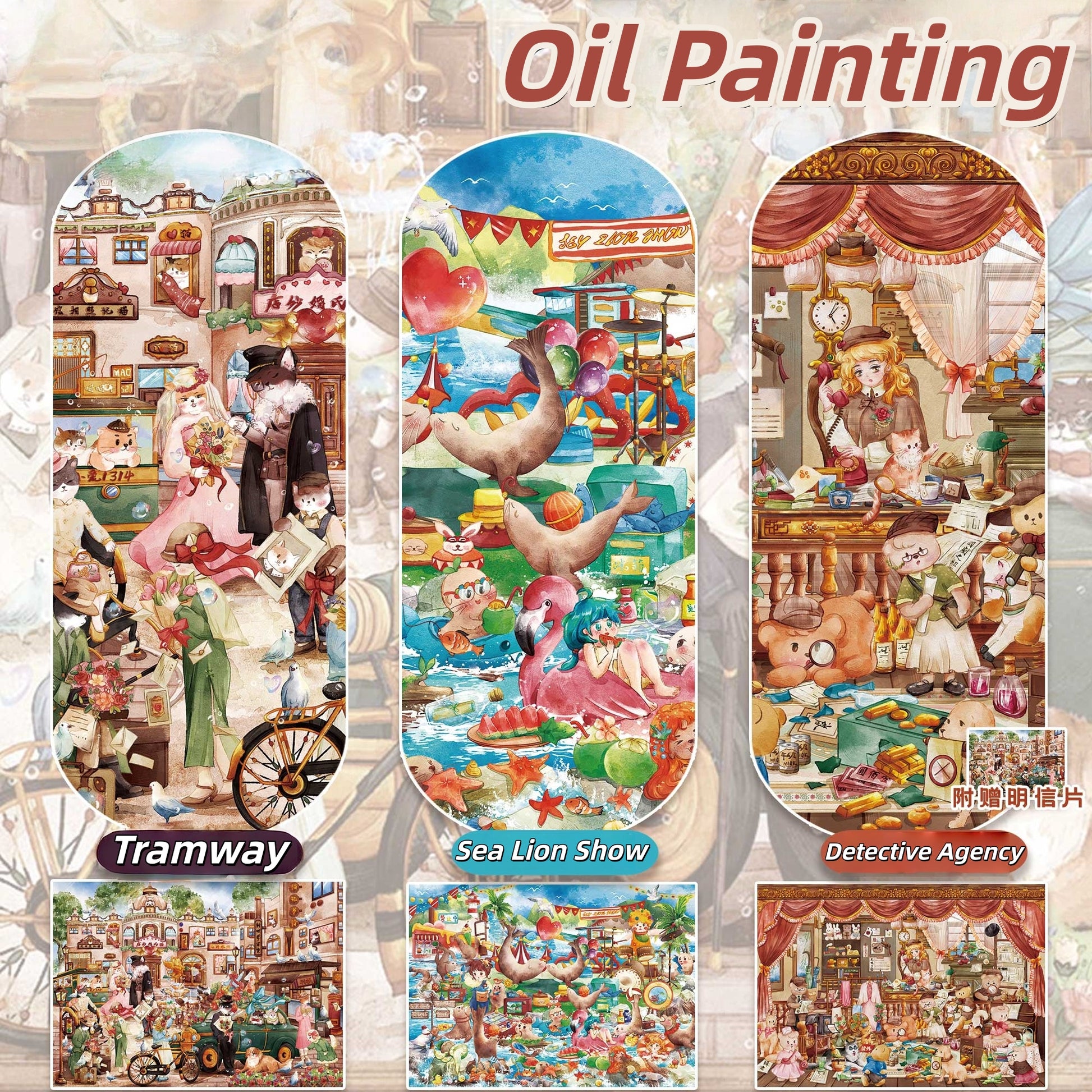 Oil Painting 3D Sticker | 3 Cute Miniature Scenes