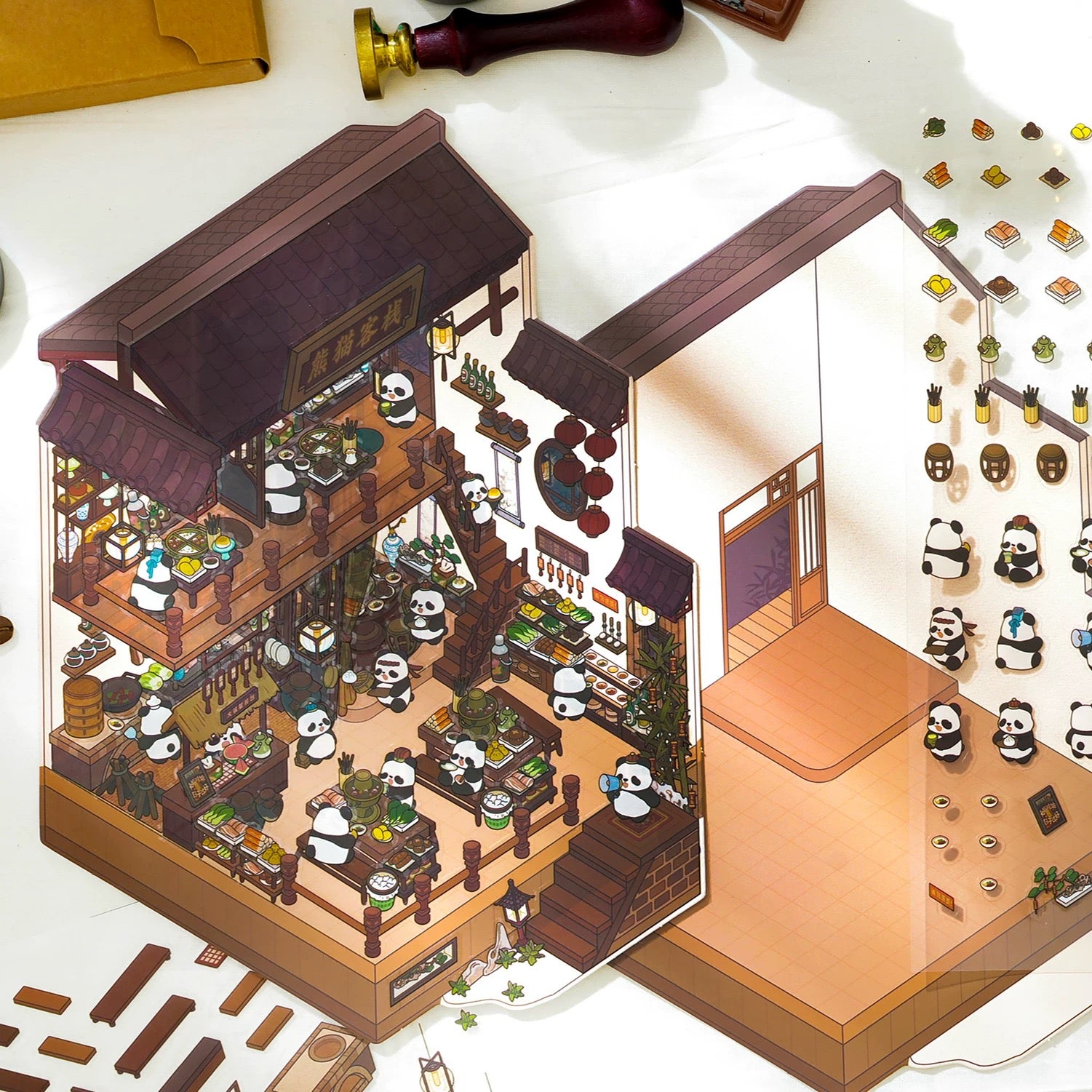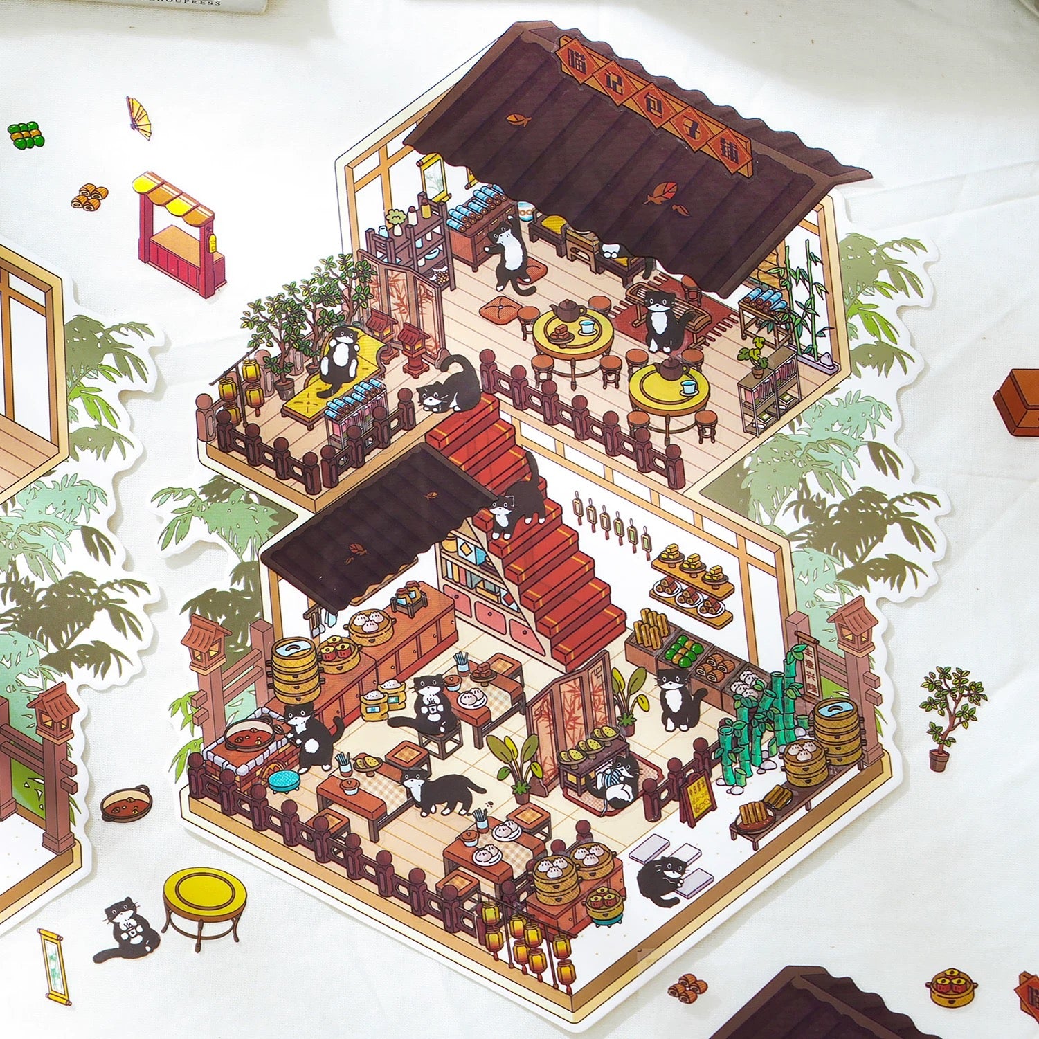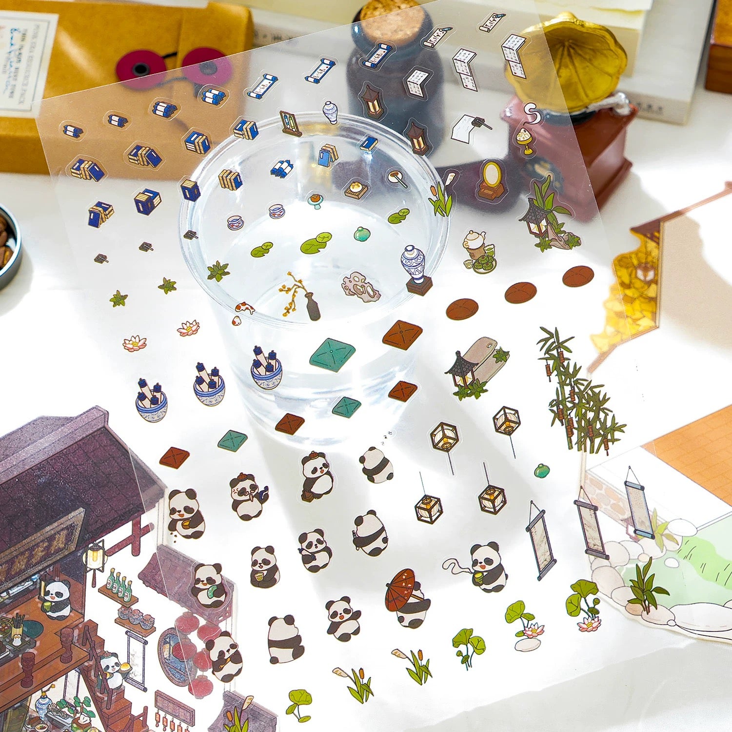 Whiskers & Bamboo 3D Sticker | 4 Cute Miniature Scenes