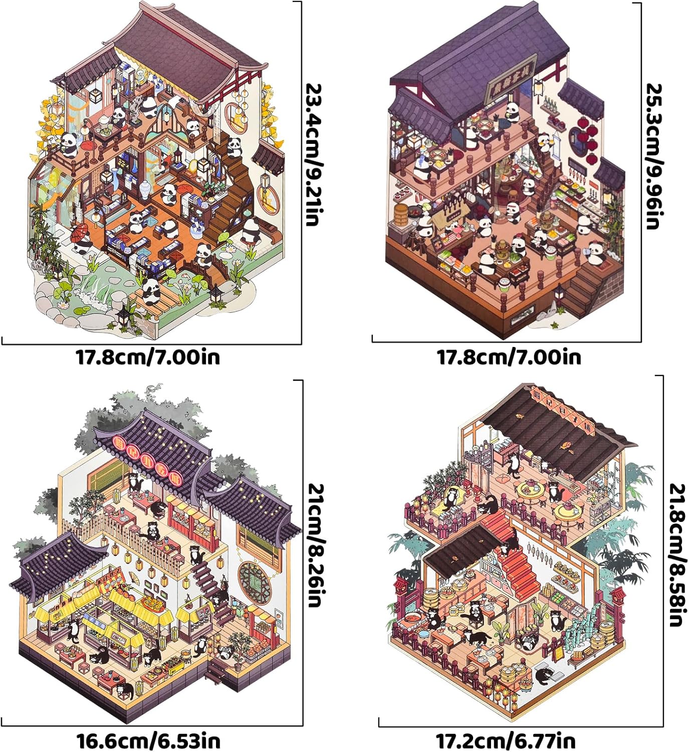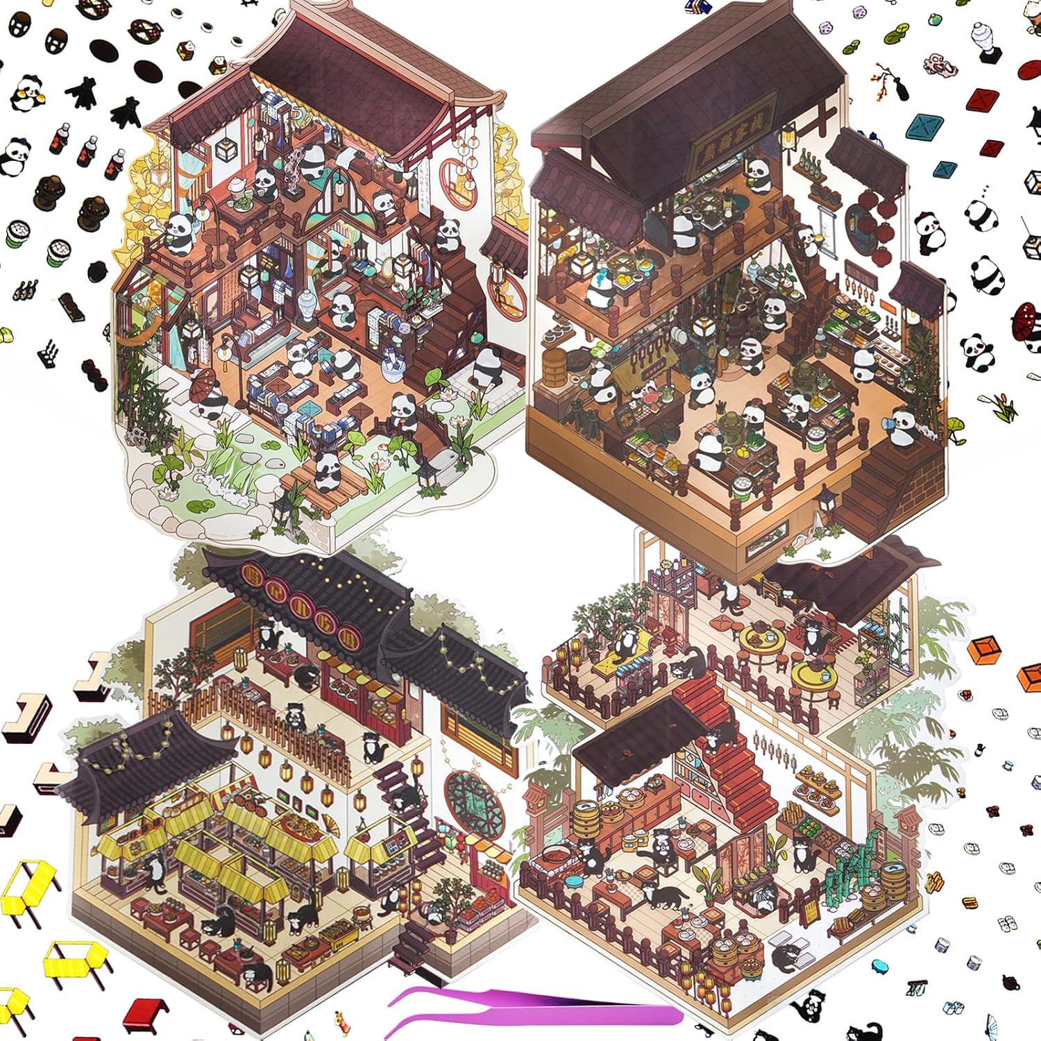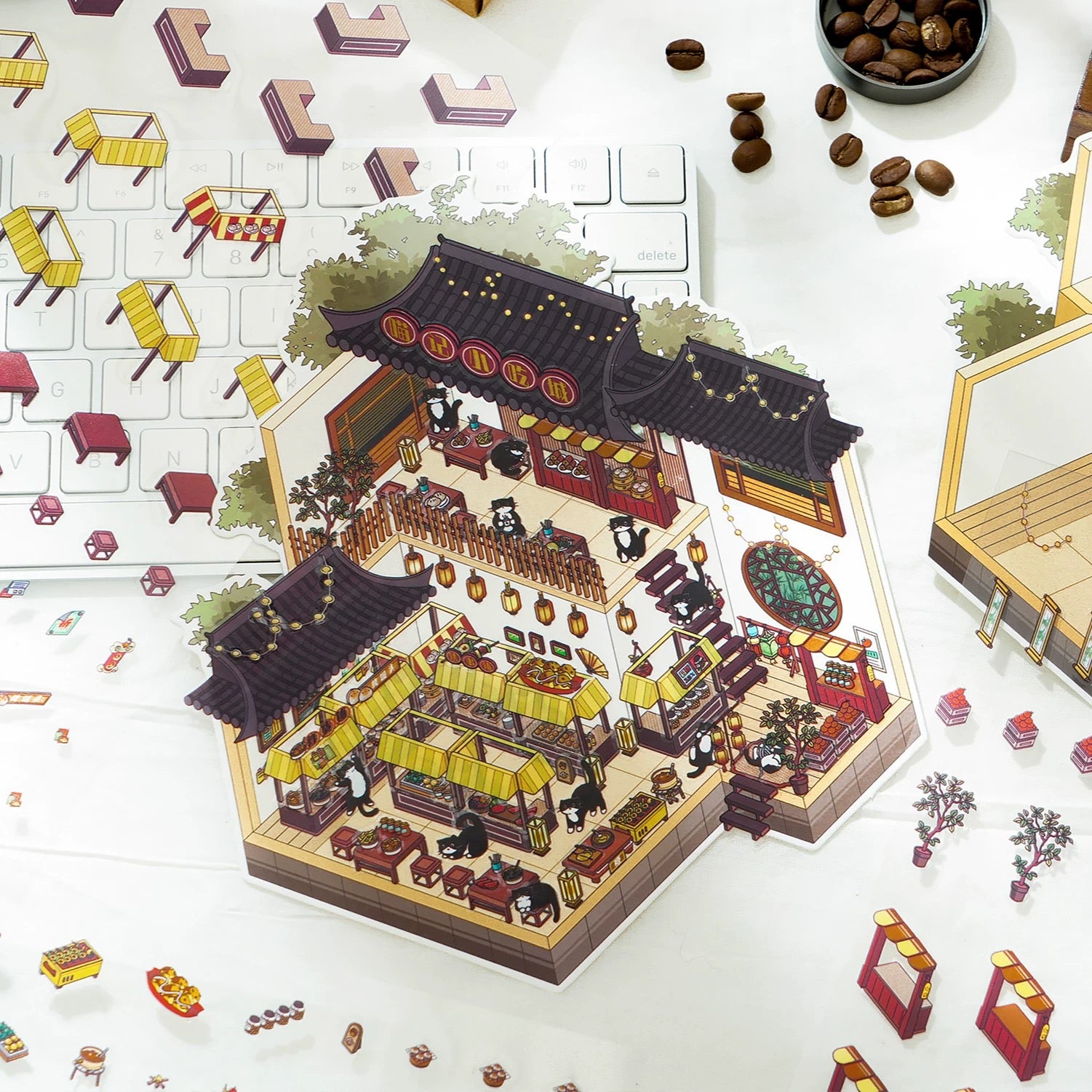 Whiskers & Bamboo 3D Sticker | 4 Cute Miniature Scenes