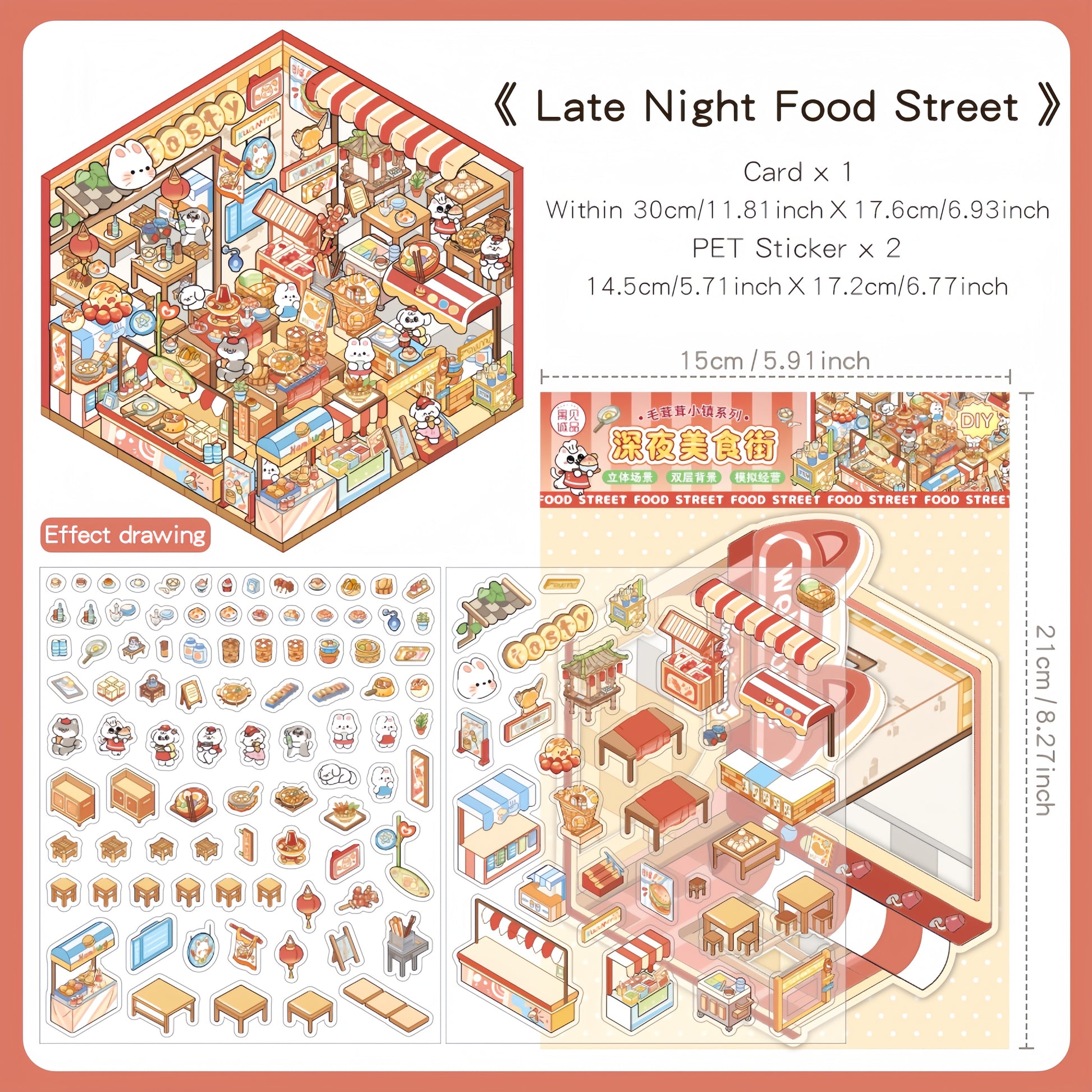 Paw Shops 3D Sticker | 4 Cute Miniature Scenes
