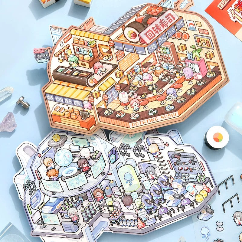 Pixel Adventures 3D Sticker | 2 Cute Miniature Scenes