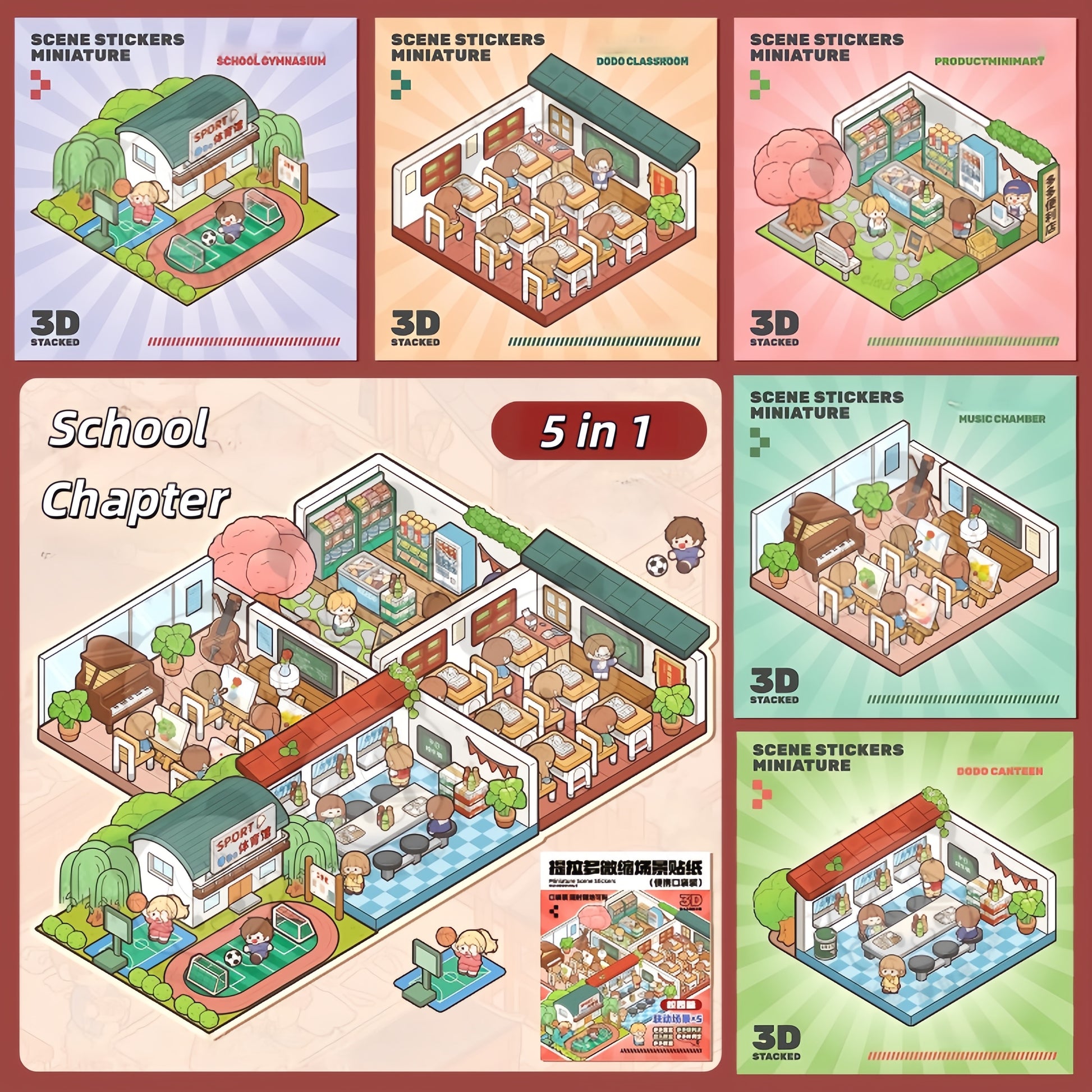 Pocket World 3D Sticker | 4 Cute Miniature Scenes