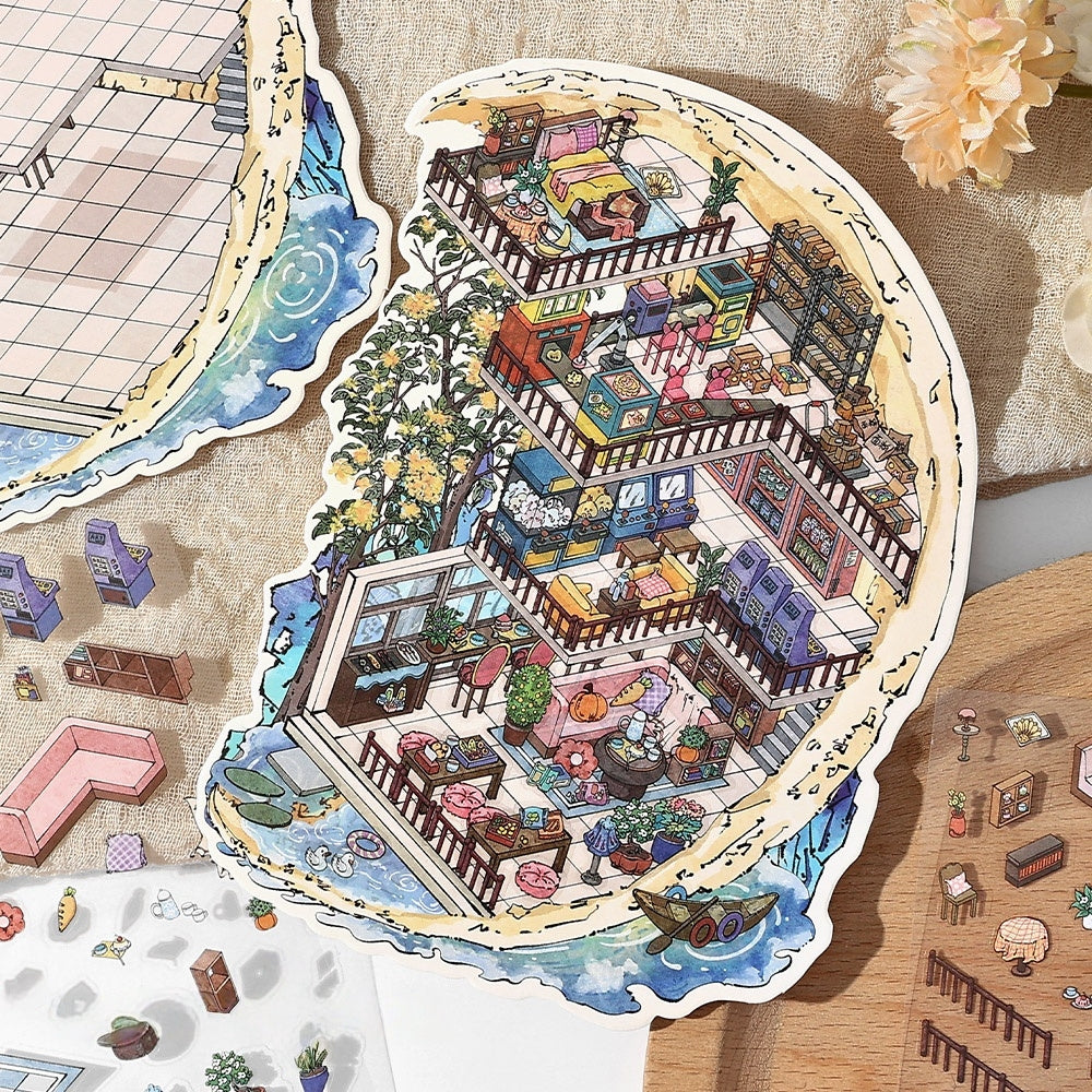 Poetic Dwelling 3D Sticker | 4 Cute Miniature Scenes