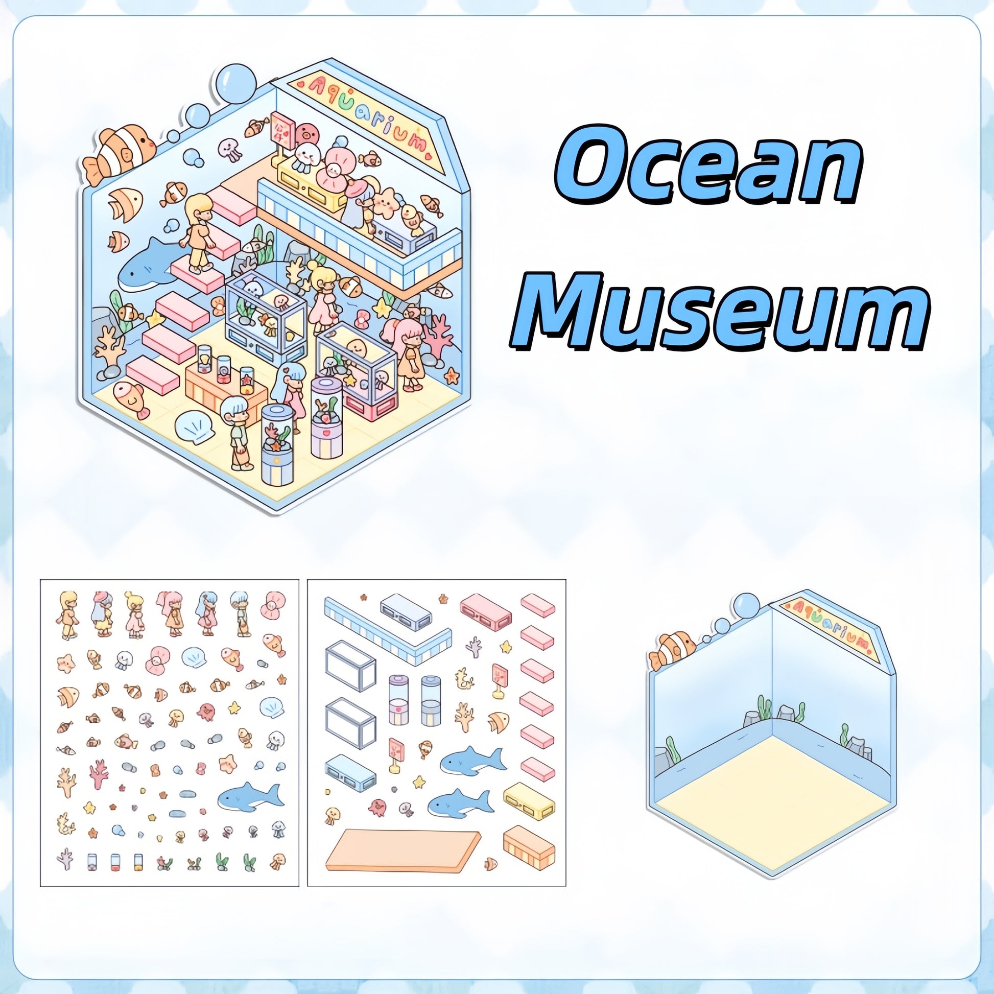 Tiny Exhibition 3D Sticker | 8 Cute Miniature Scenes
