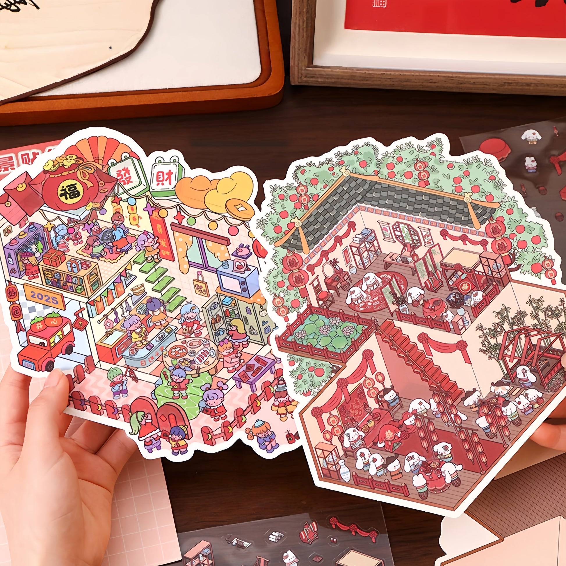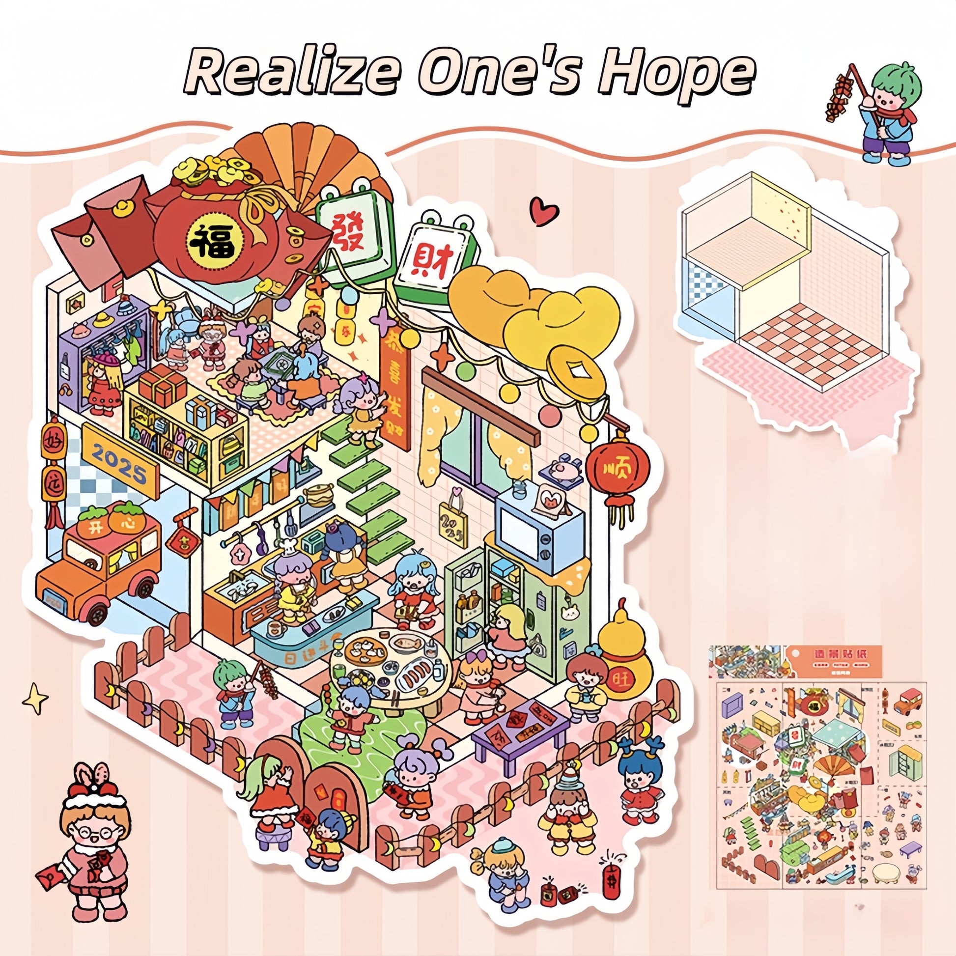Fortune from Above 3D Sticker | 2 Cute Miniature Scenes