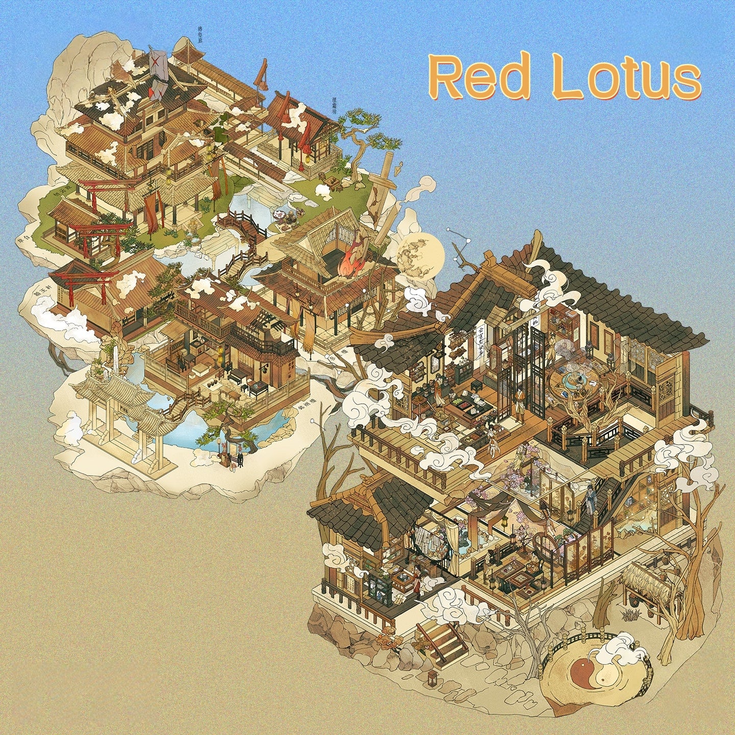 Red Lotus 3D Sticker | 2 Cute Miniature Scenes