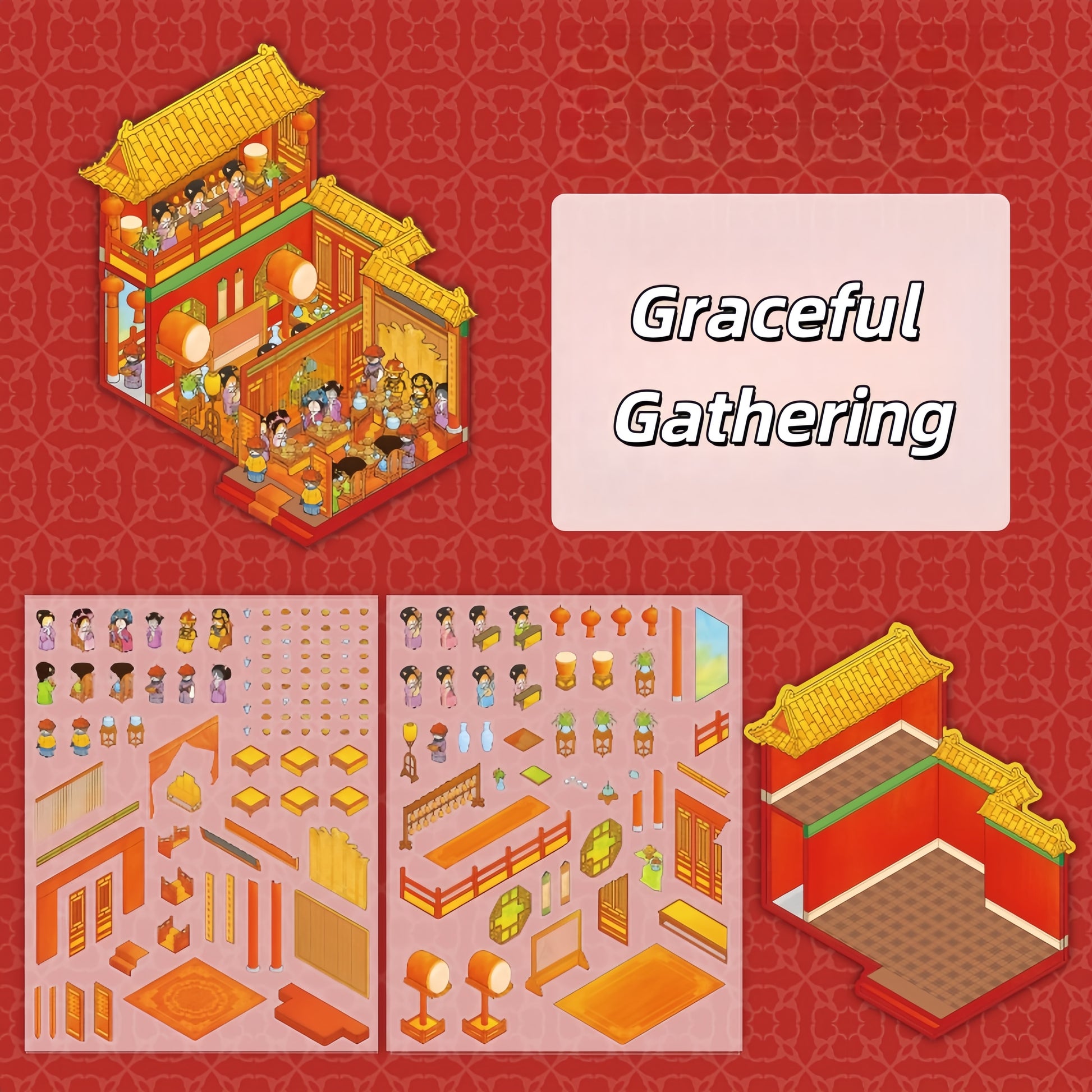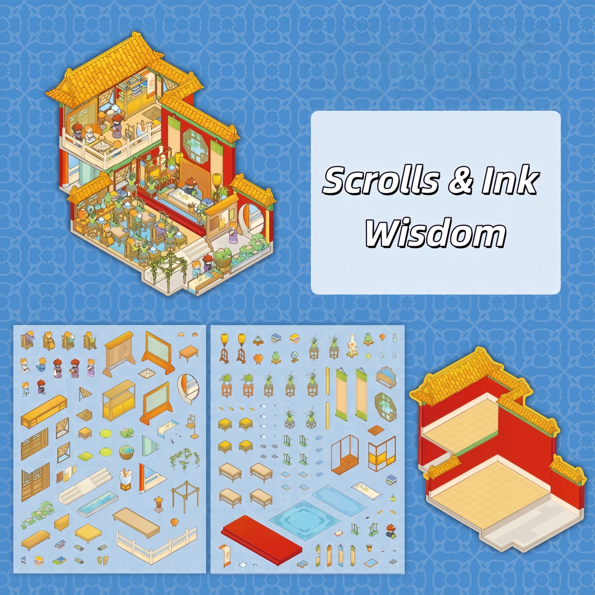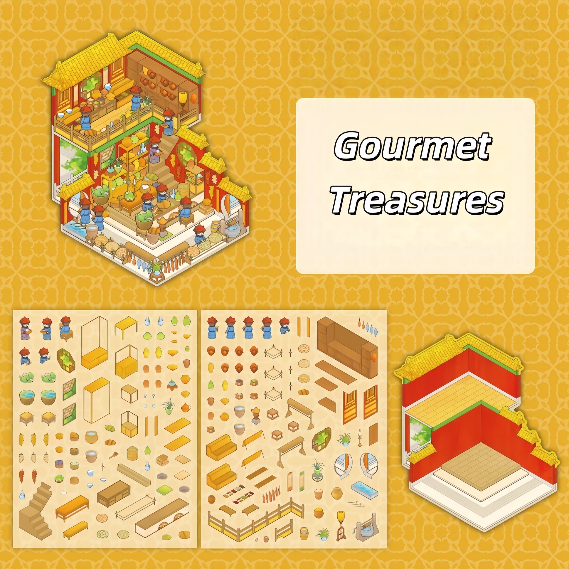 Rites, Music, Books & Feasts 3D Sticker | 4 Cute Miniature Scenes