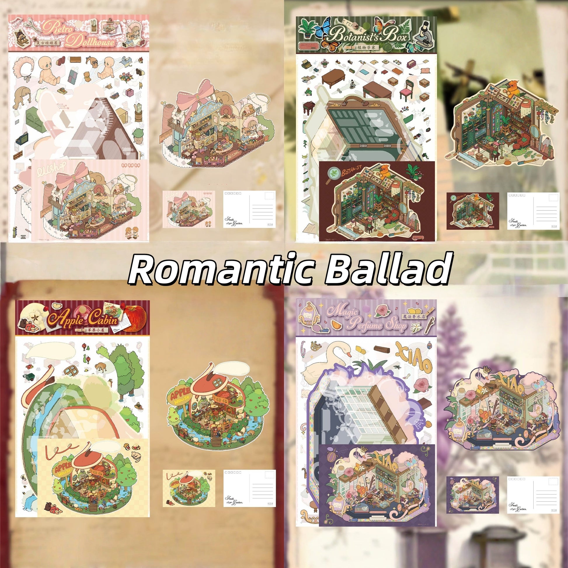 Romantic Ballad 3D Sticker | 4 Cute Miniature Scenes