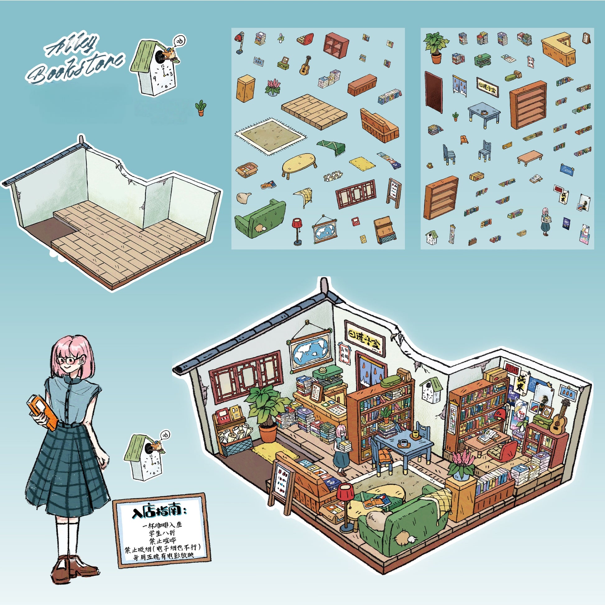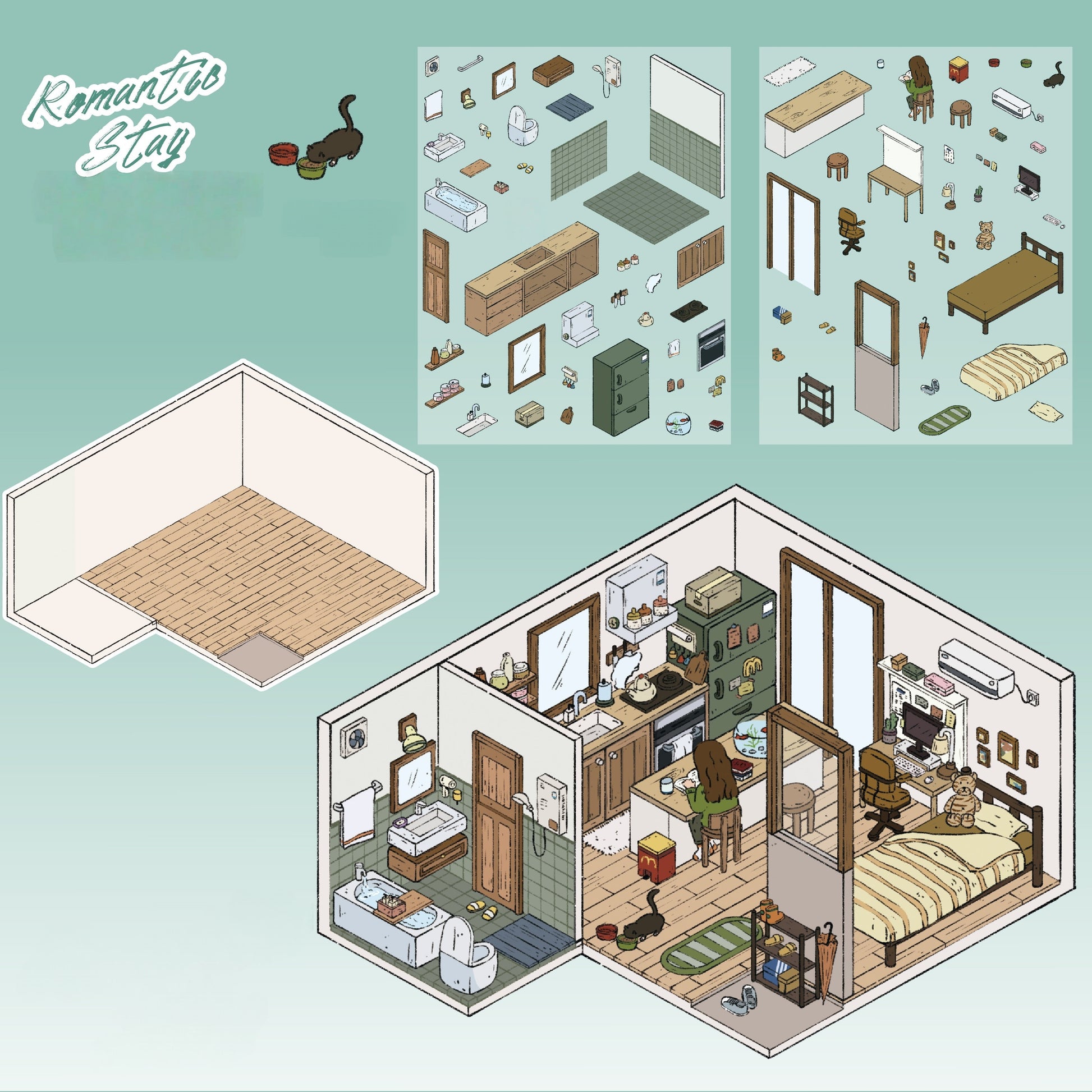 Romantic Corner 3D Sticker | 4 Cute Miniature Scenes
