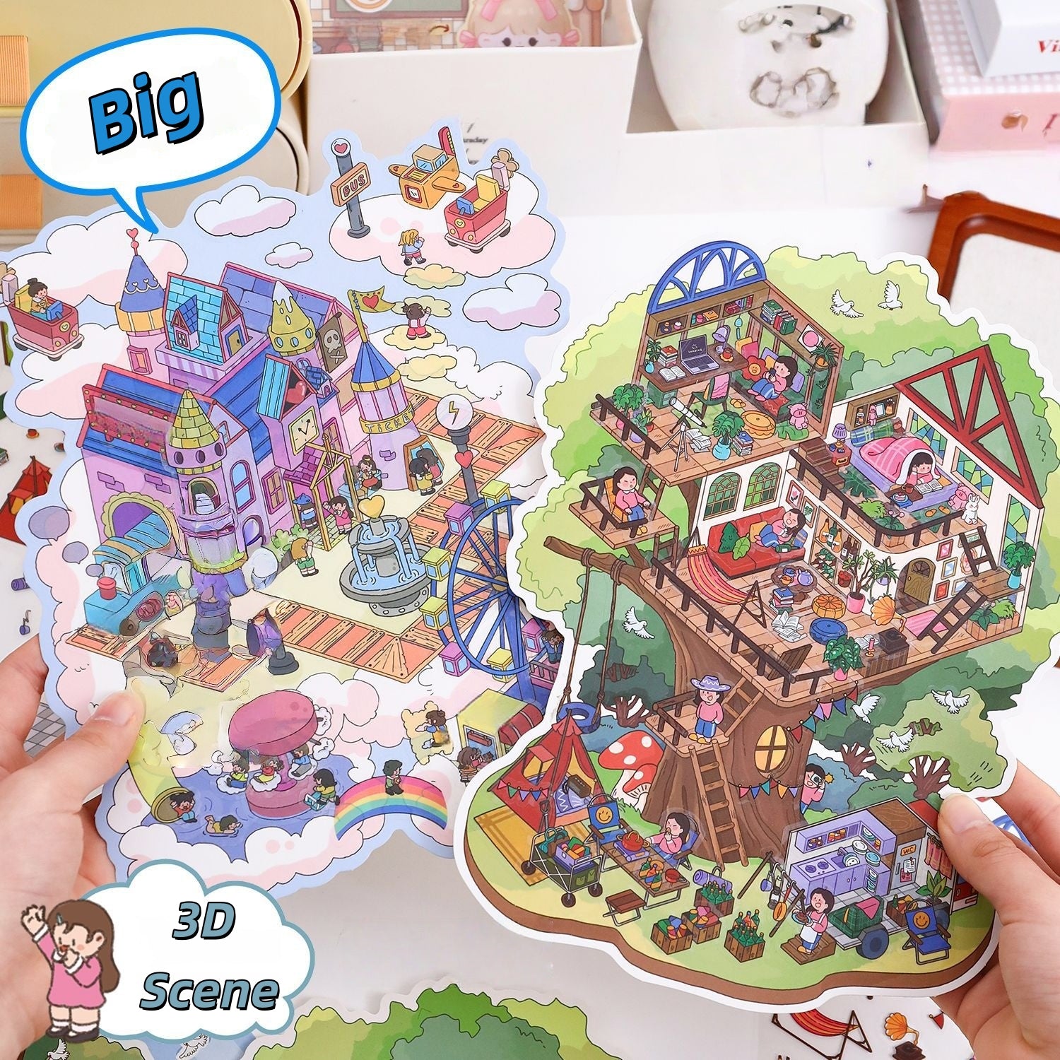 Dreamland 3D Sticker | 2 Cute Miniature Scenes