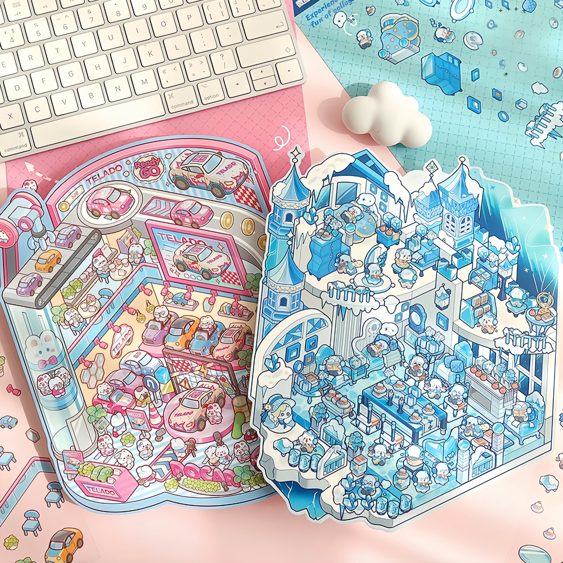 Simulation Management 3D Sticker | 4 Cute Miniature Scenes