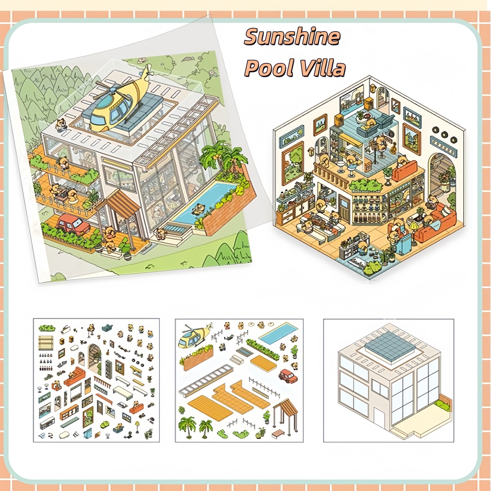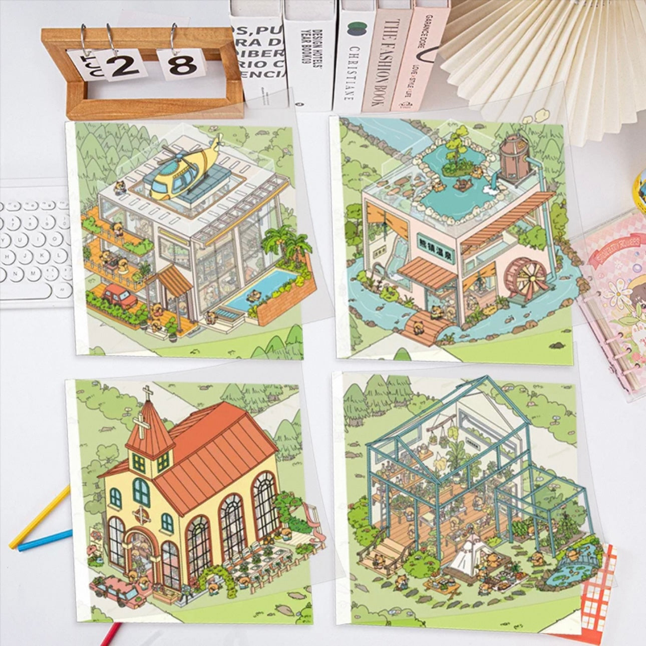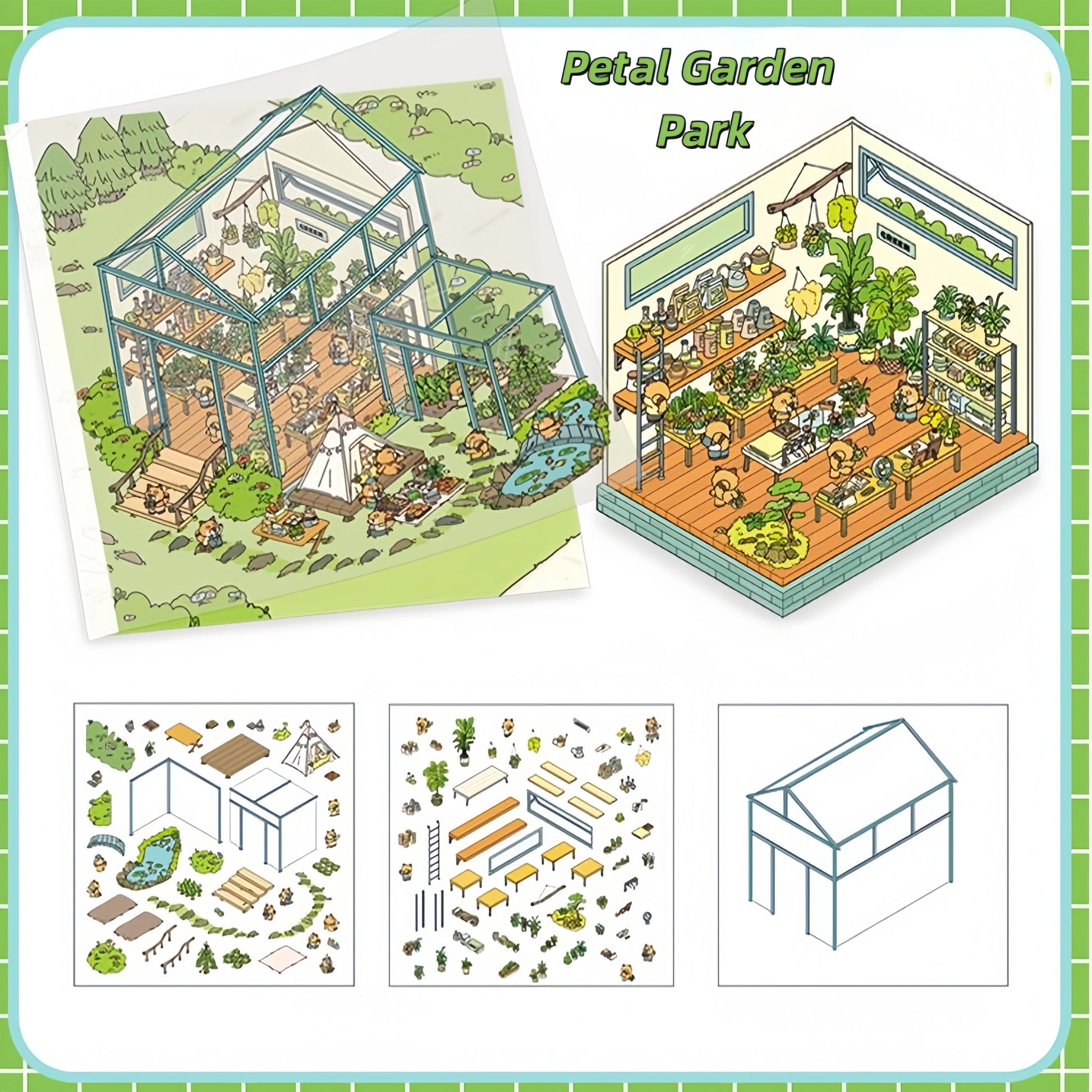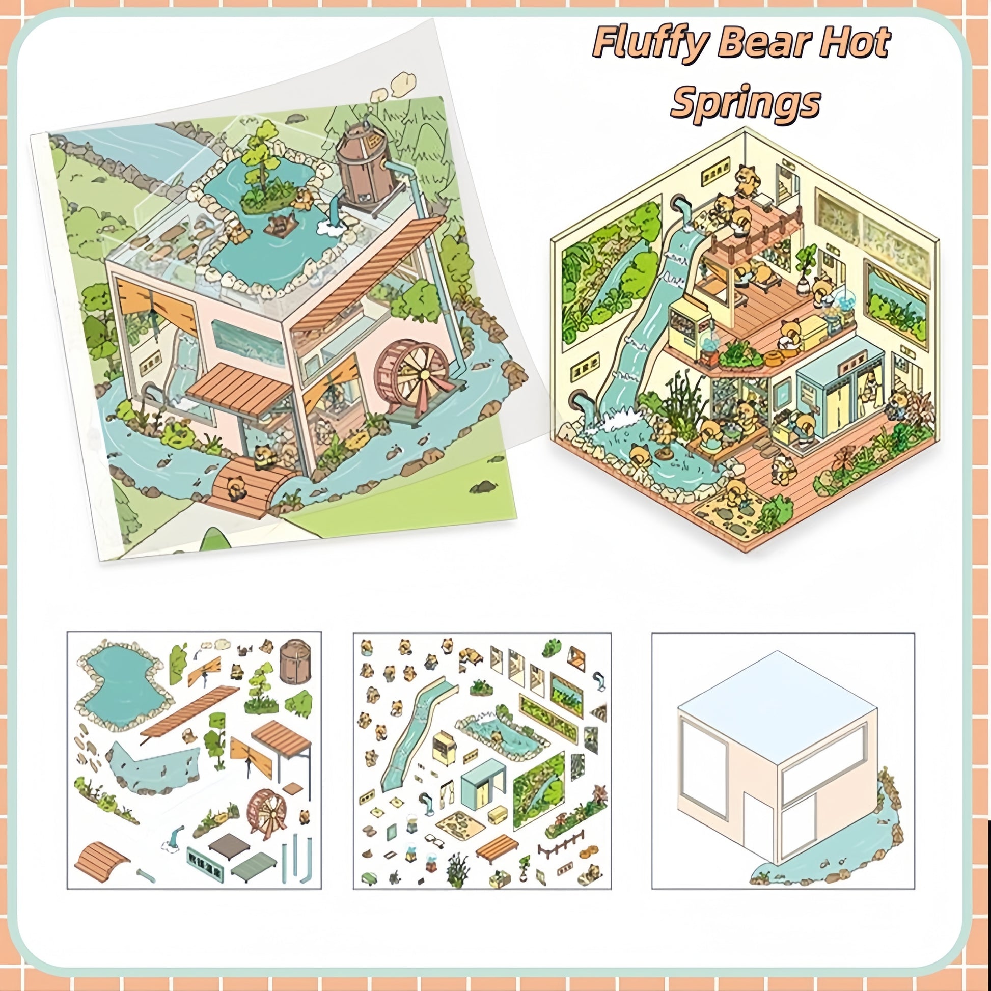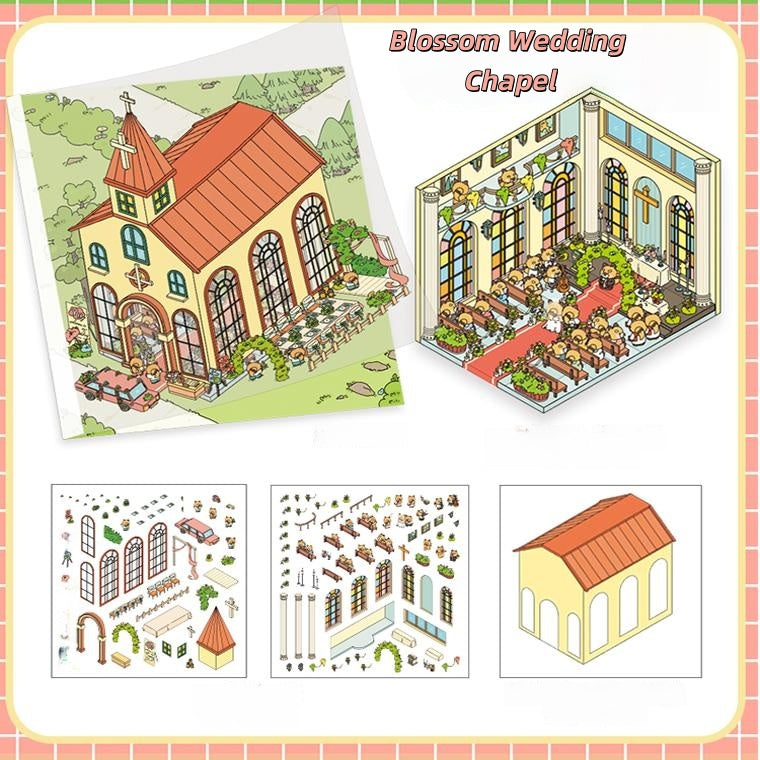Square Box Town 3D Sticker | 4 Cute Miniature Scenes