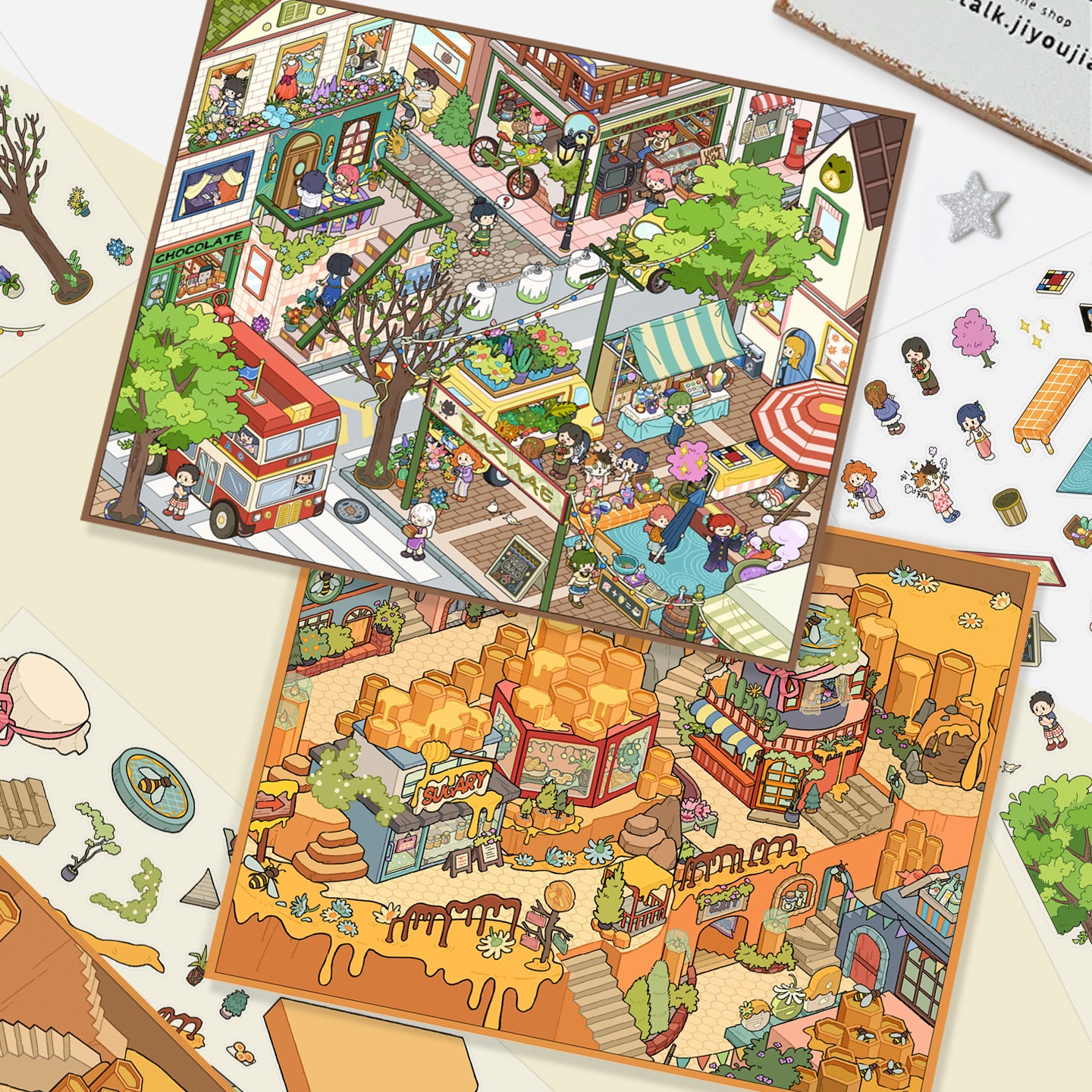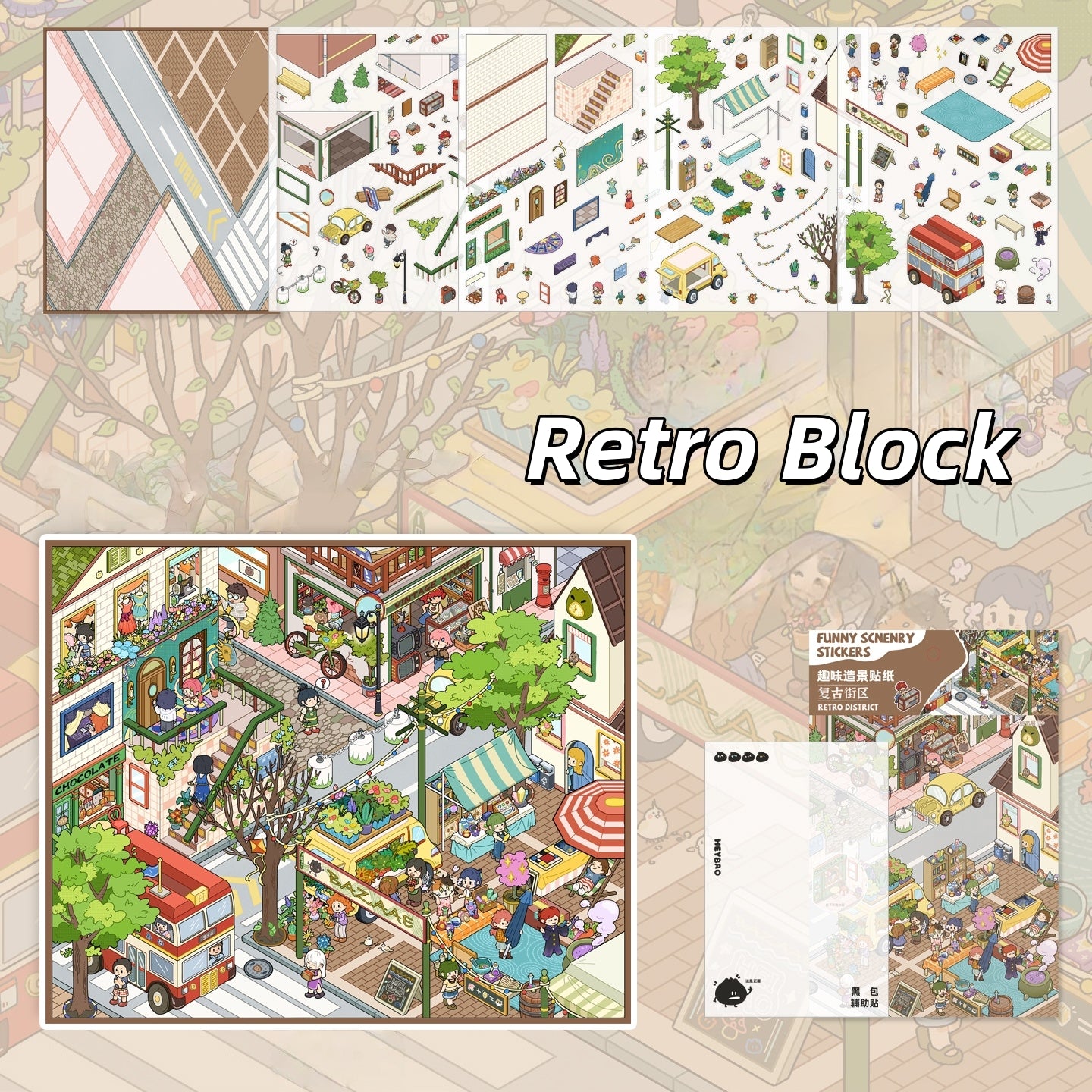 Streetscape 3D Sticker | 4 Cute Miniature Scenes