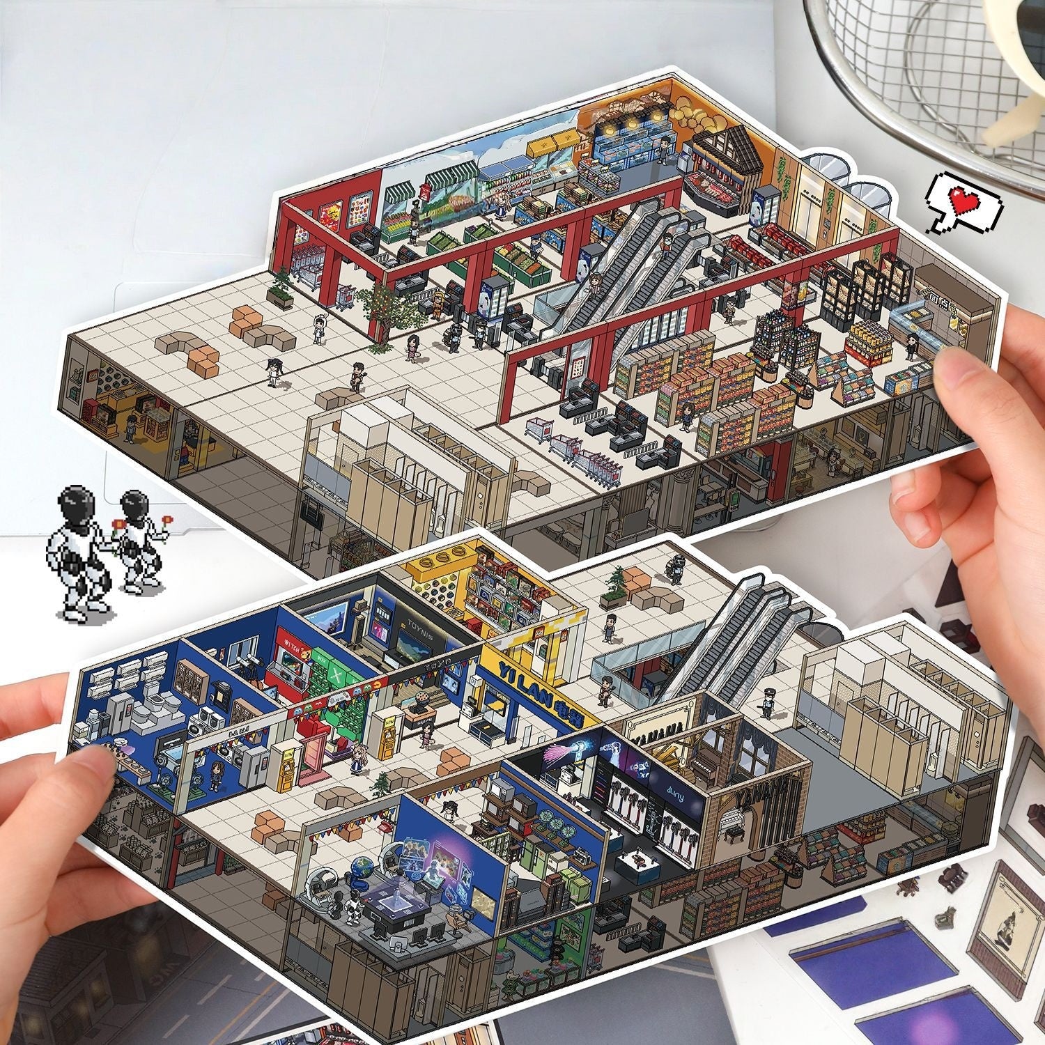Pixel Adventures 3D Sticker | 2 Cute Miniature Scenes