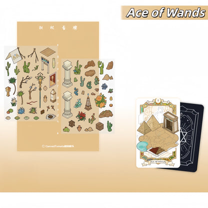 Tarot Cards 3D Sticker | 4 Cute Miniature Scenes
