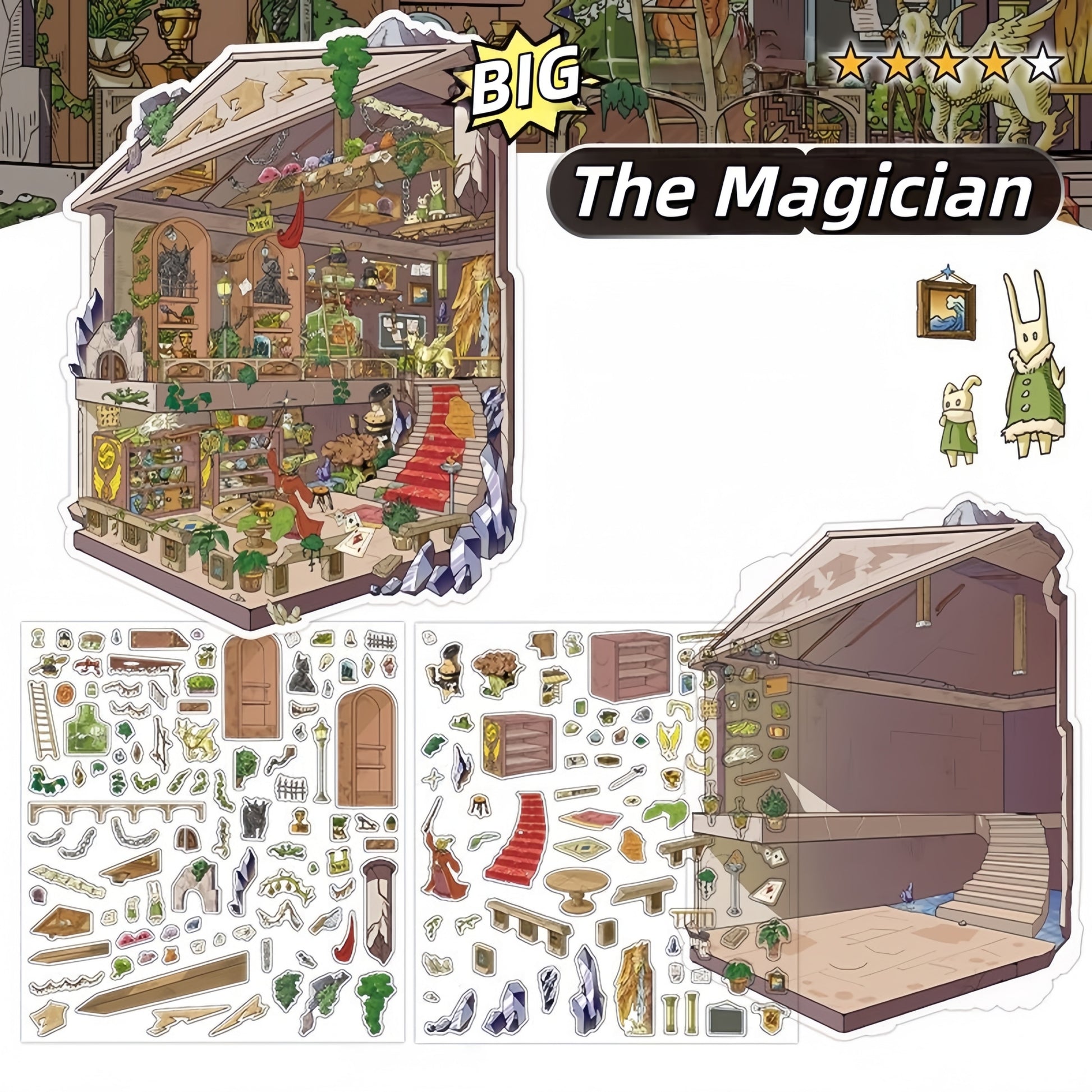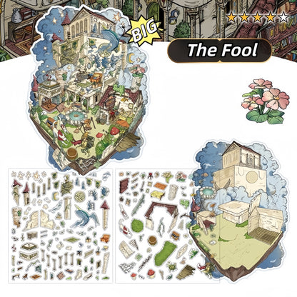 Tarot Cards 3D Sticker | 4 Cute Miniature Scenes