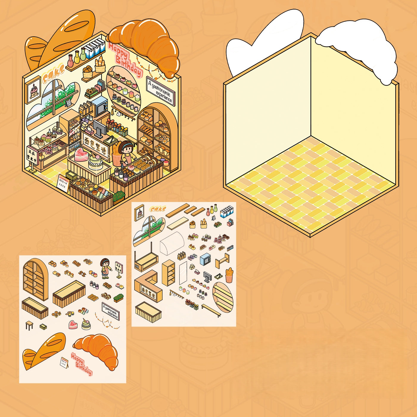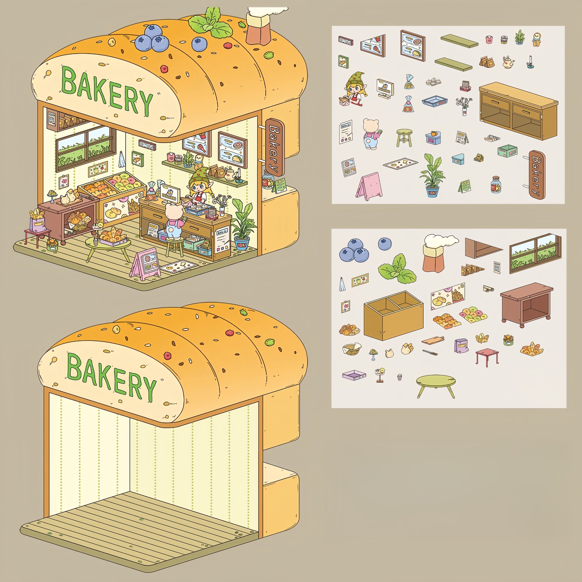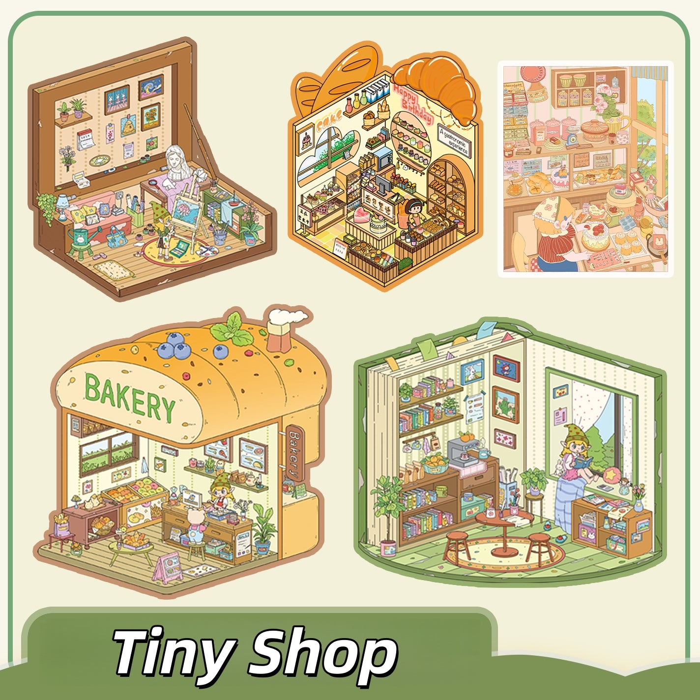 Tiny Shop 3D Sticker | 5 Cute Miniature Scenes