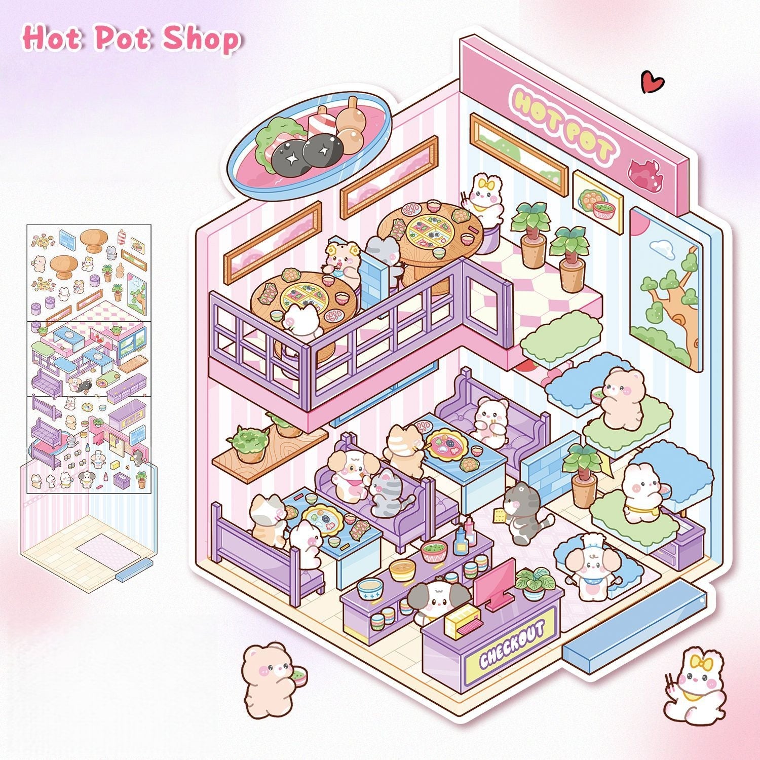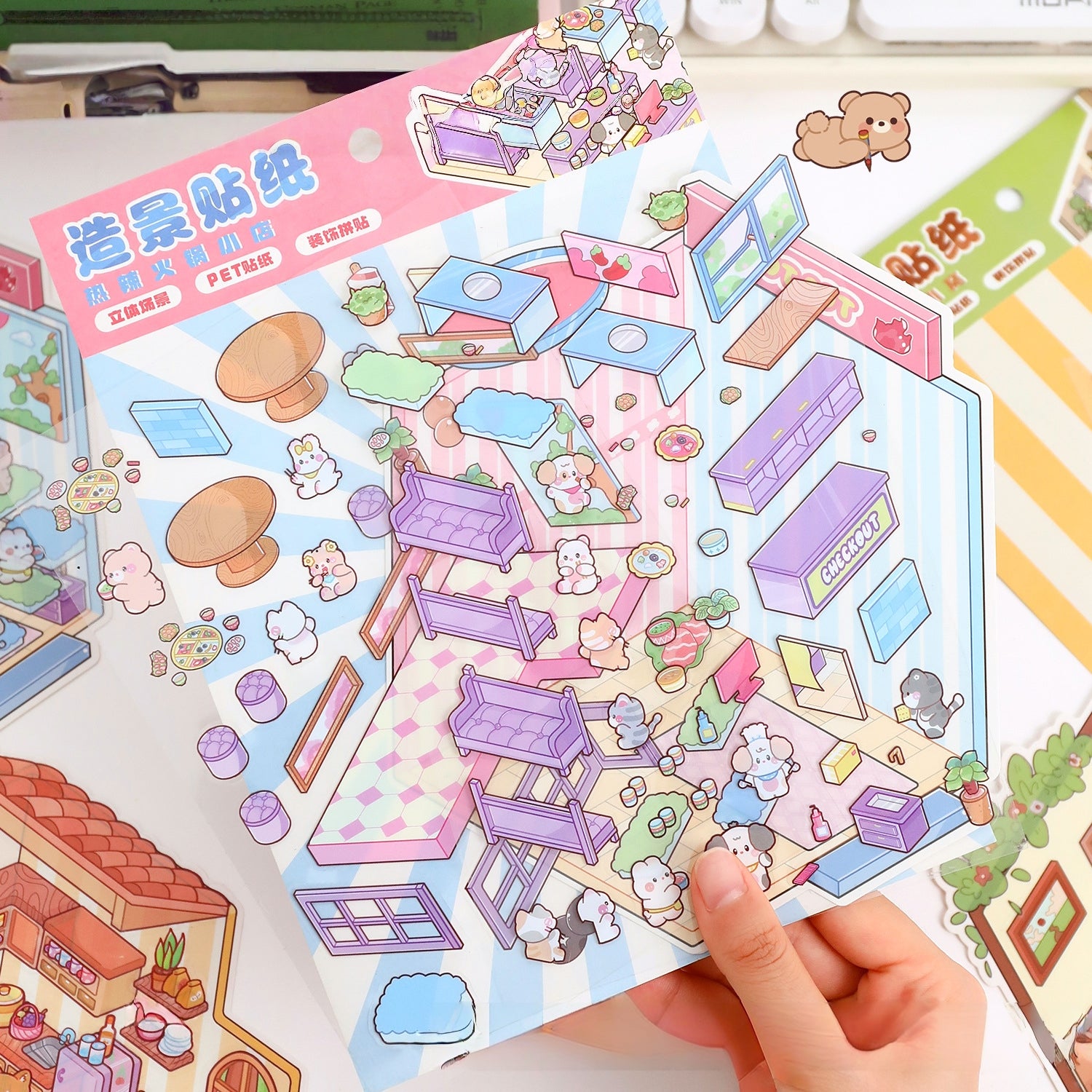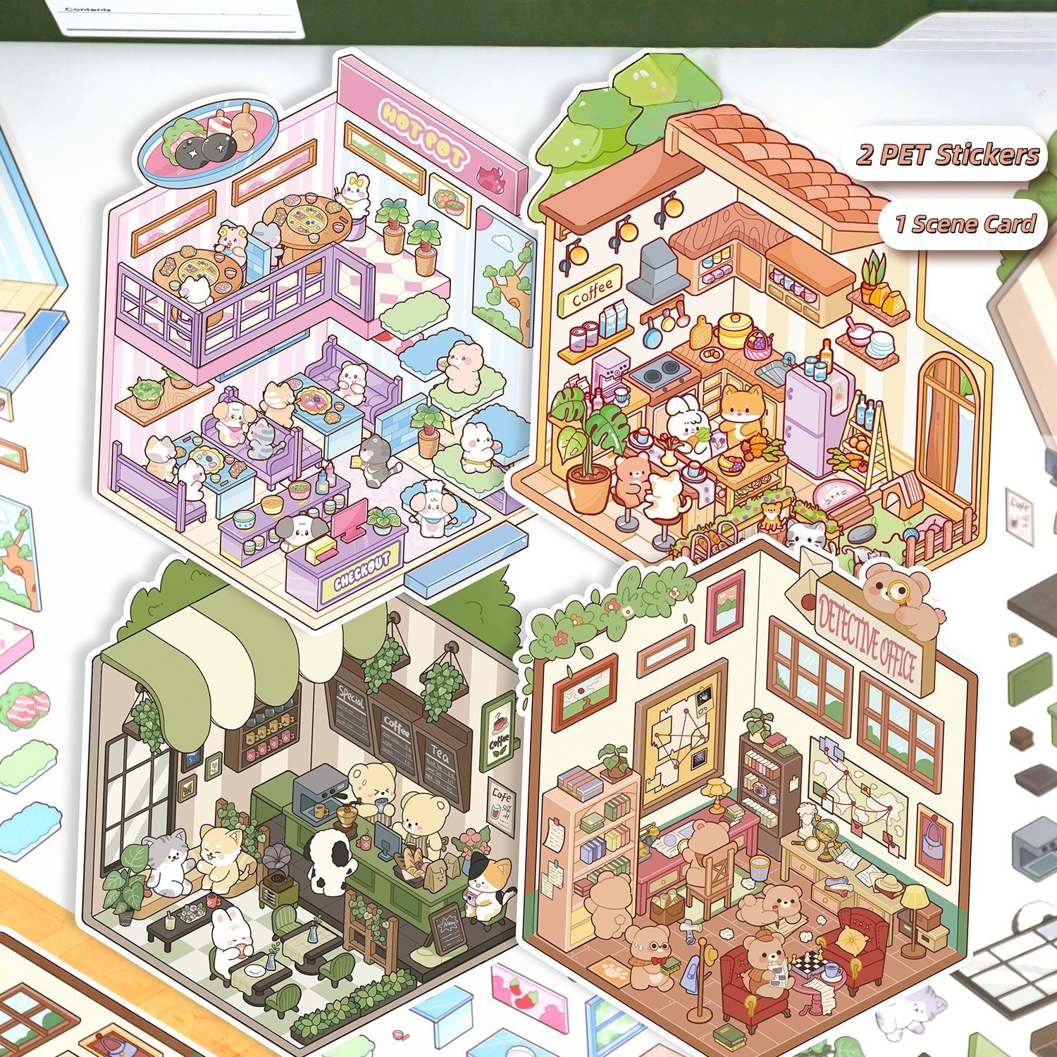 Tiny Shops 3D Sticker | 4 Cute Miniature Scenes