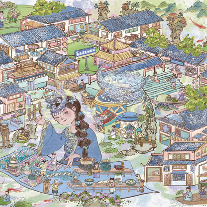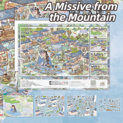 Ancient Chinese Village 3D Sticker | 2 Cute Miniature Scenes