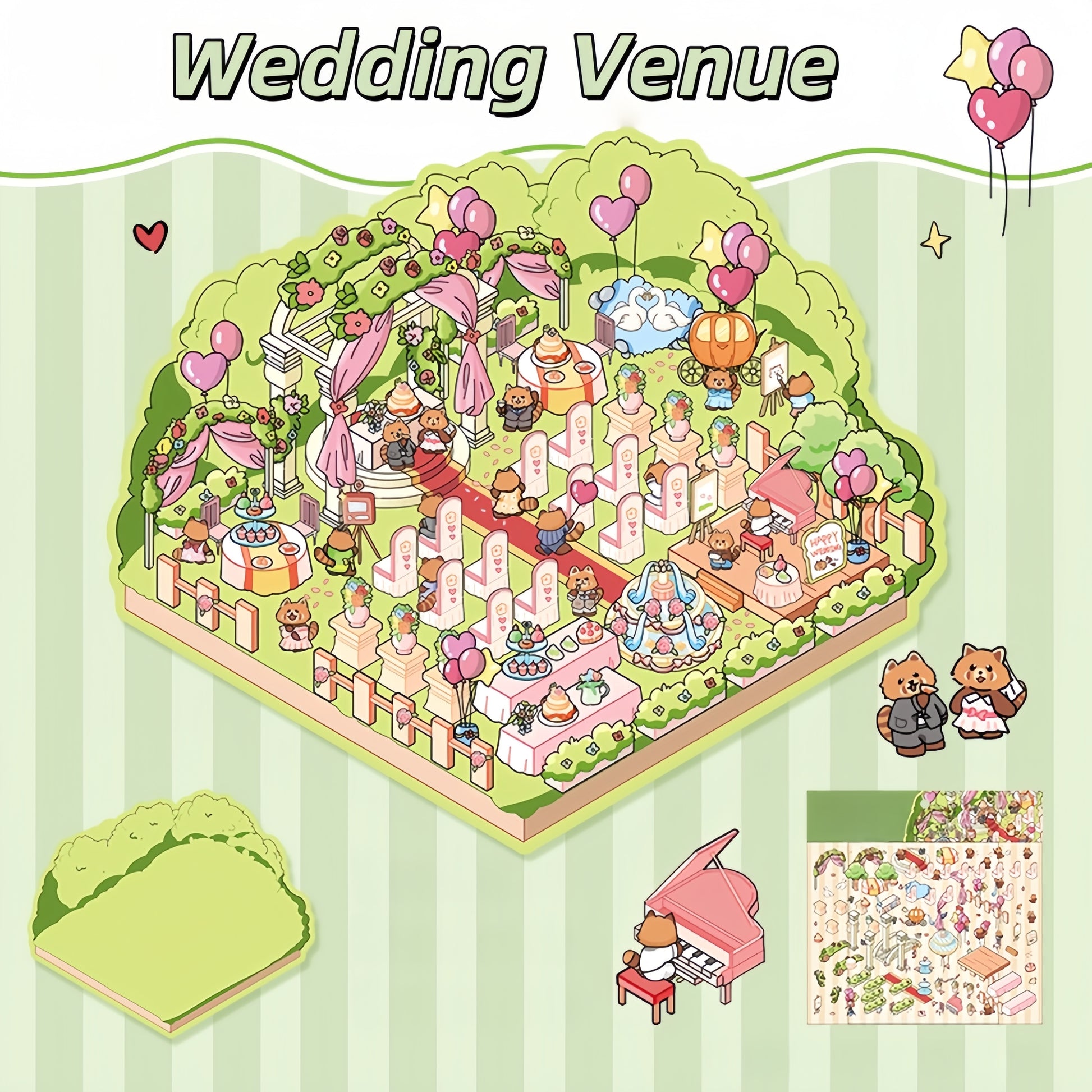 Wedding Series 3D Sticker | 2 Cute Miniature Scenes