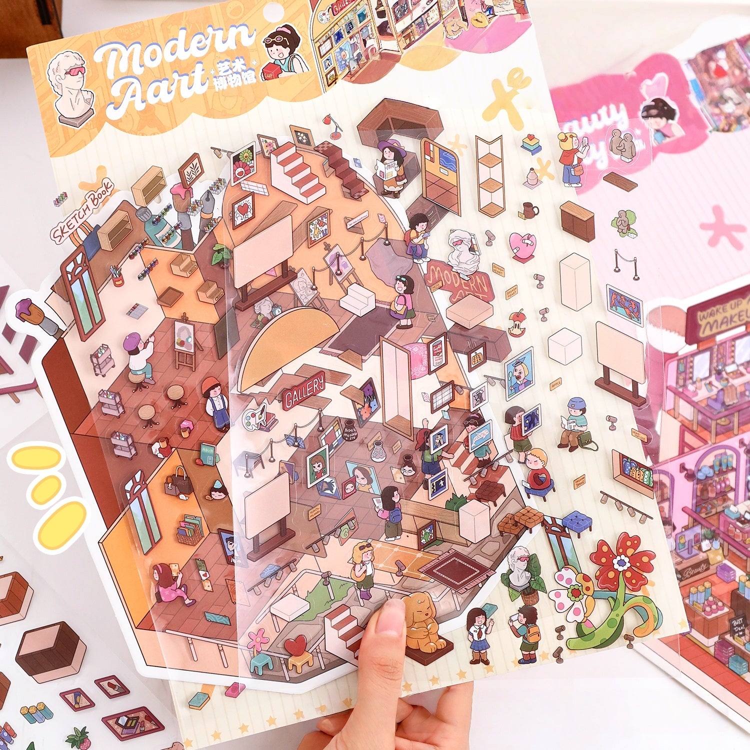 Simulation Management 3D Sticker | 2 Cute Miniature Scenes