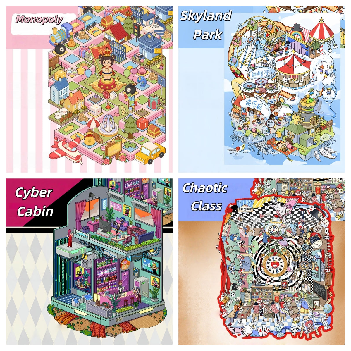 Whimsical Life 3D Sticker | 4 Cute Miniature Scenes