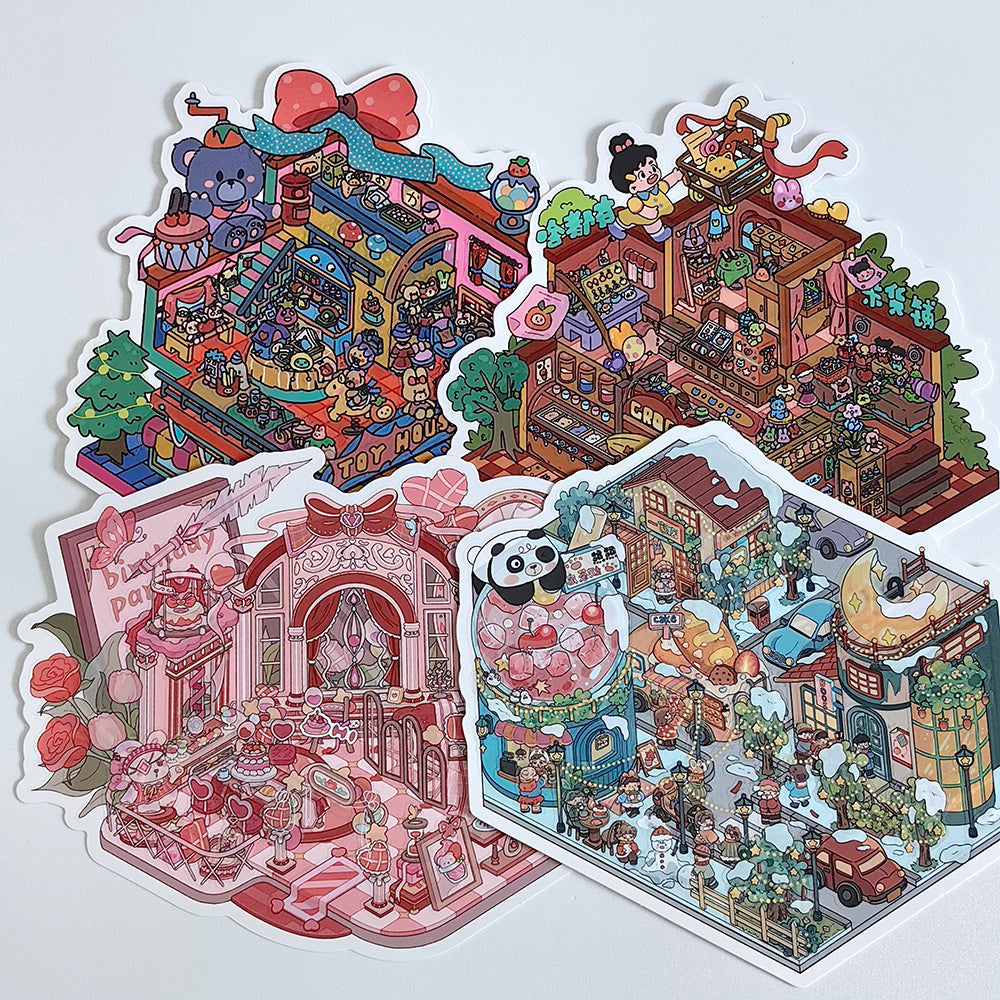 Whimsical Life 3D Sticker | 4 Cute Miniature Scenes