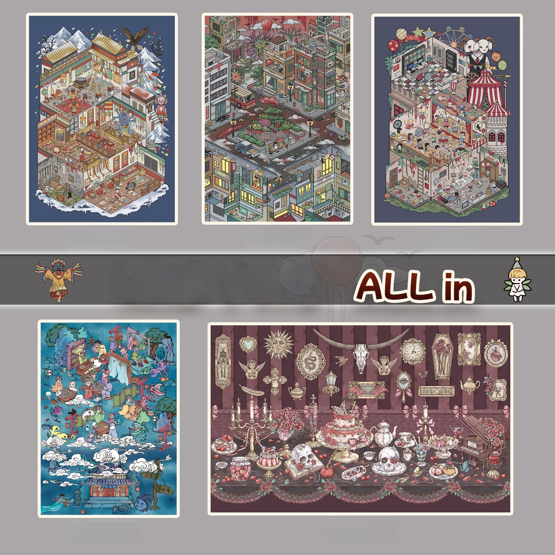 Horror Architecture 3D Sticker | 5 Cute Miniature Scenes