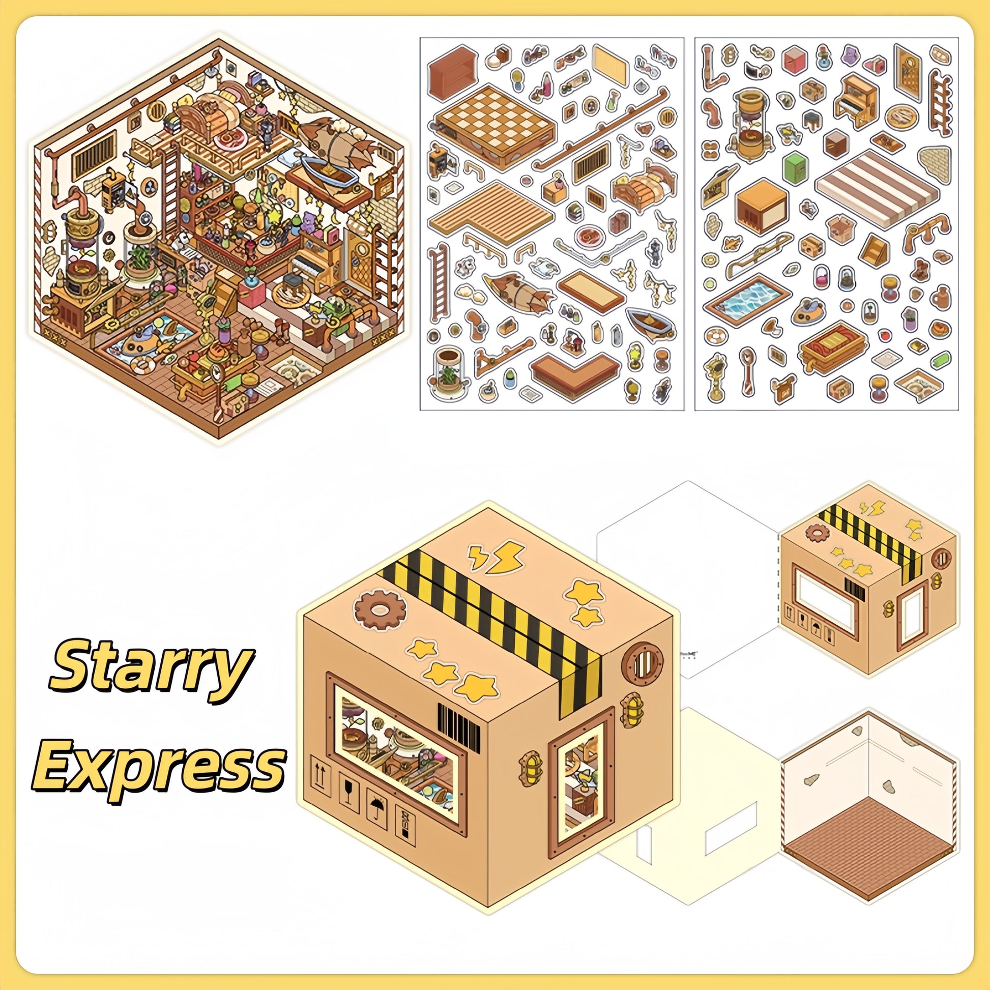 Whimsical Space 3D Sticker | 4 Cute Miniature Scenes