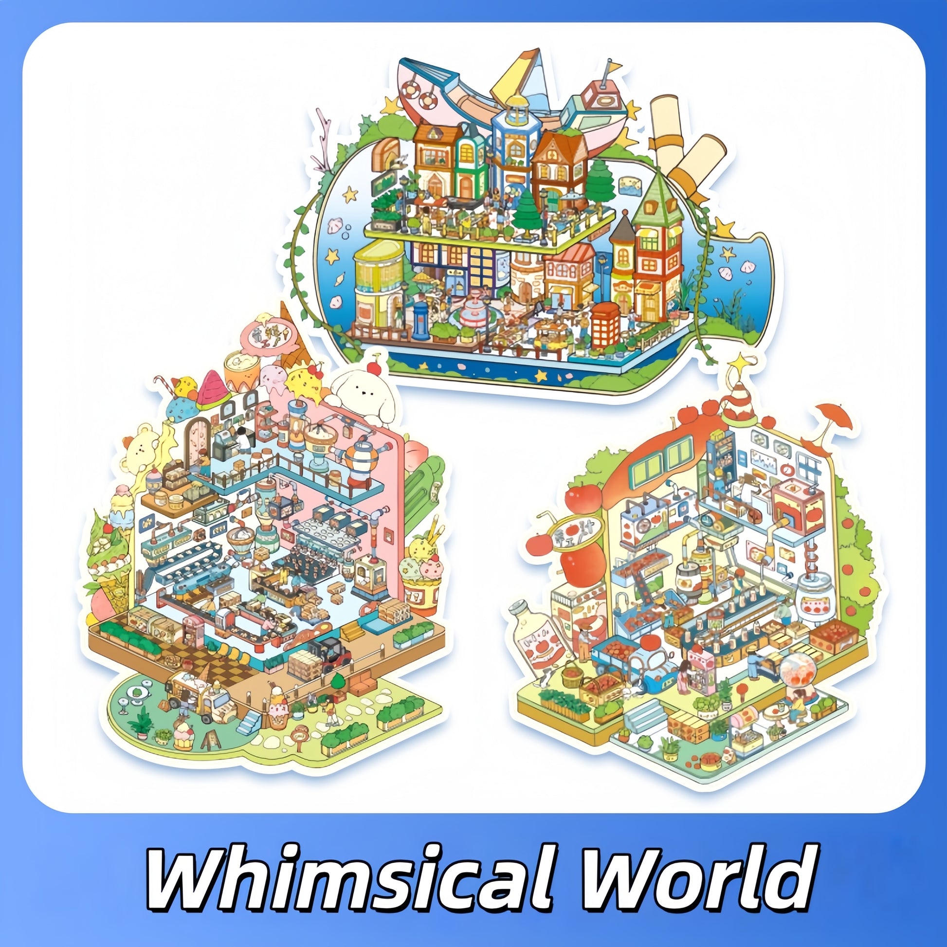 Whimsy World 3D Sticker | 3 Cute Miniature Scenes