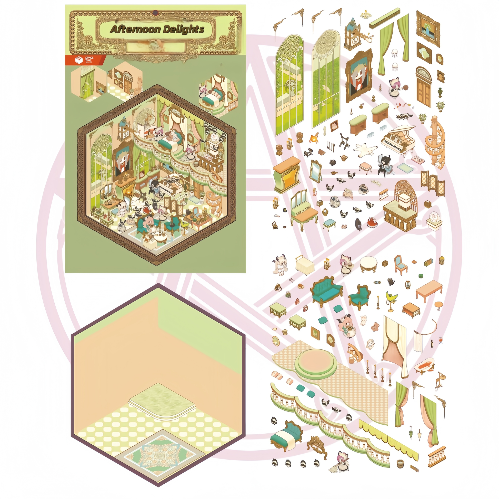 Wolfe Manor Tales 3D Sticker | 4 Cute Miniature Scenes