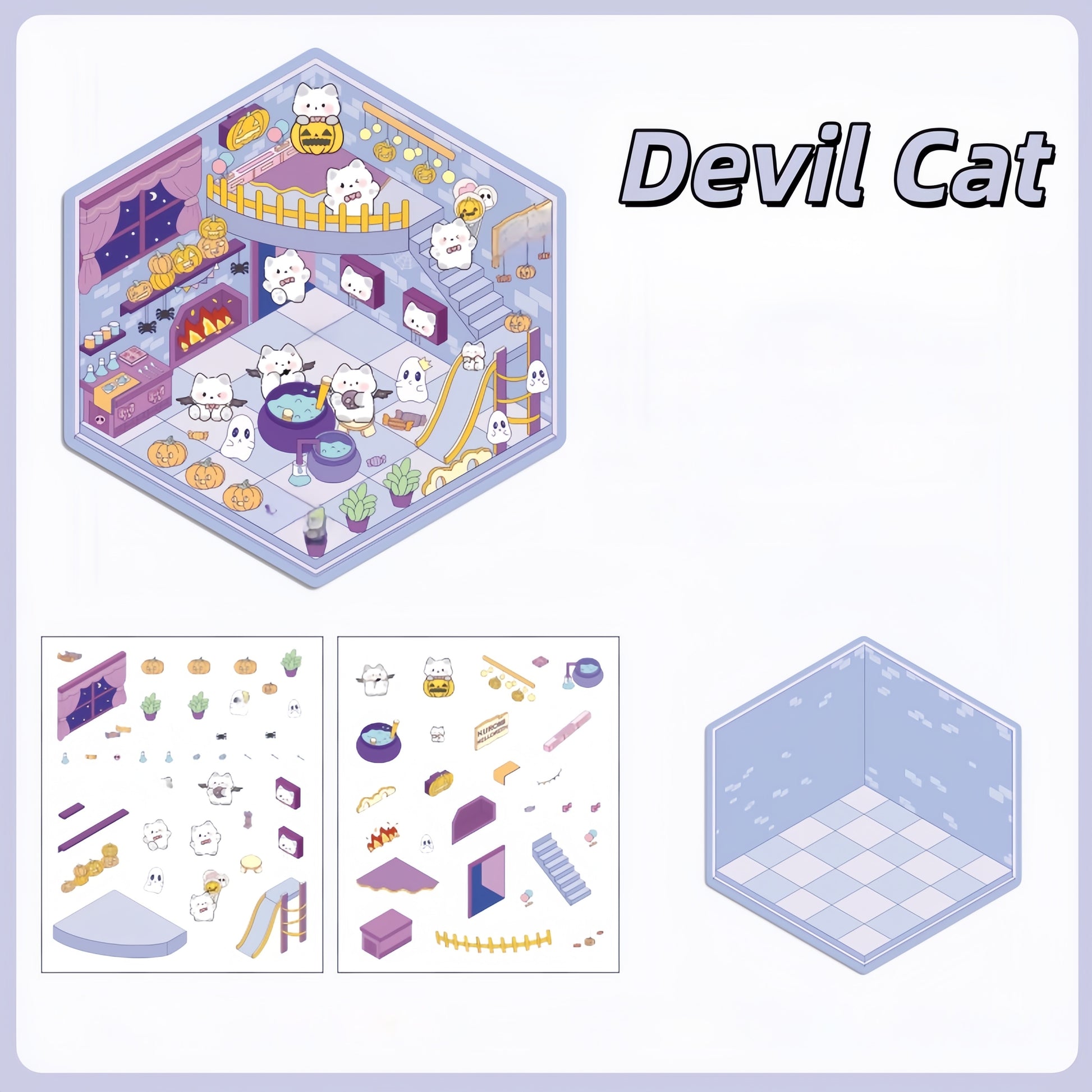 Whimsy Critter Cottages 3D Sticker | 8 Cute Miniature Scenes