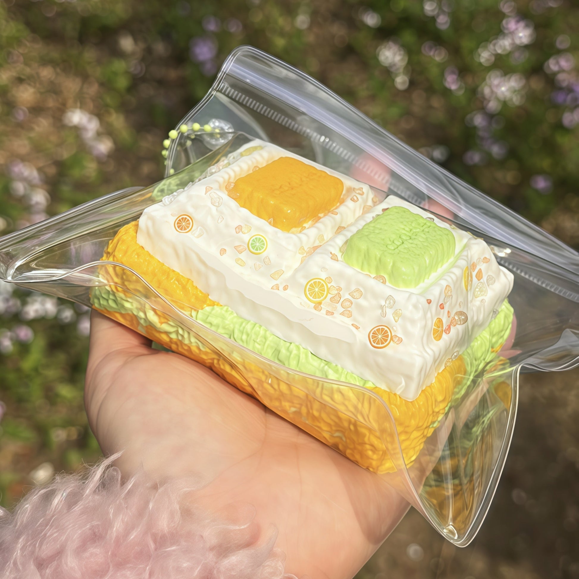Made from food-grade silicone 🍬 — soft, safe, and fun to squish! 💖 But remember: it’s a toy, not a snack! 🚫🍴